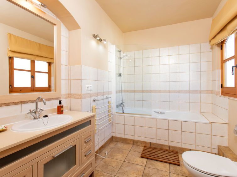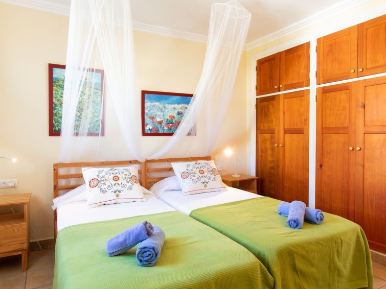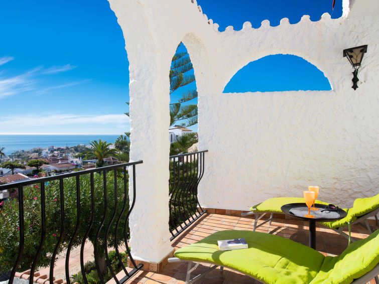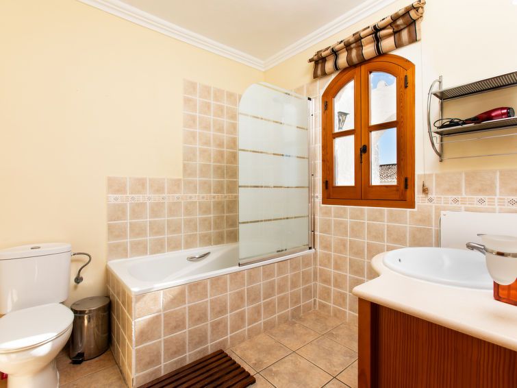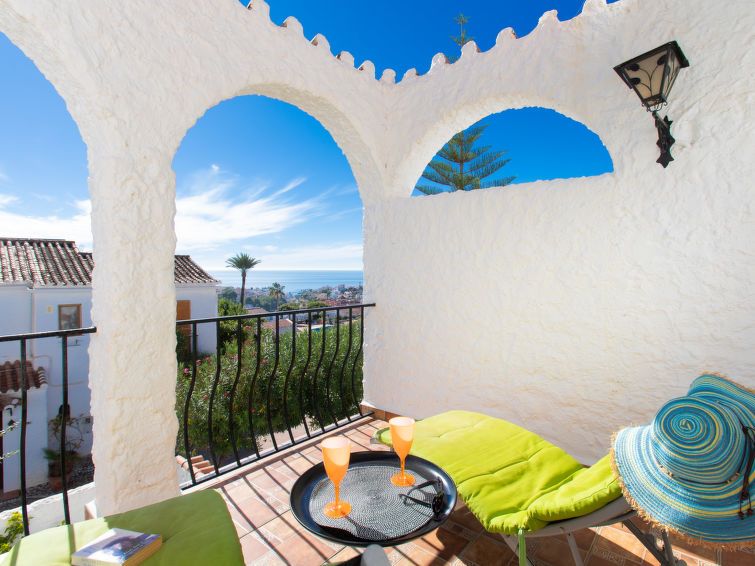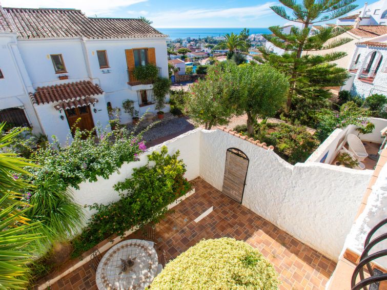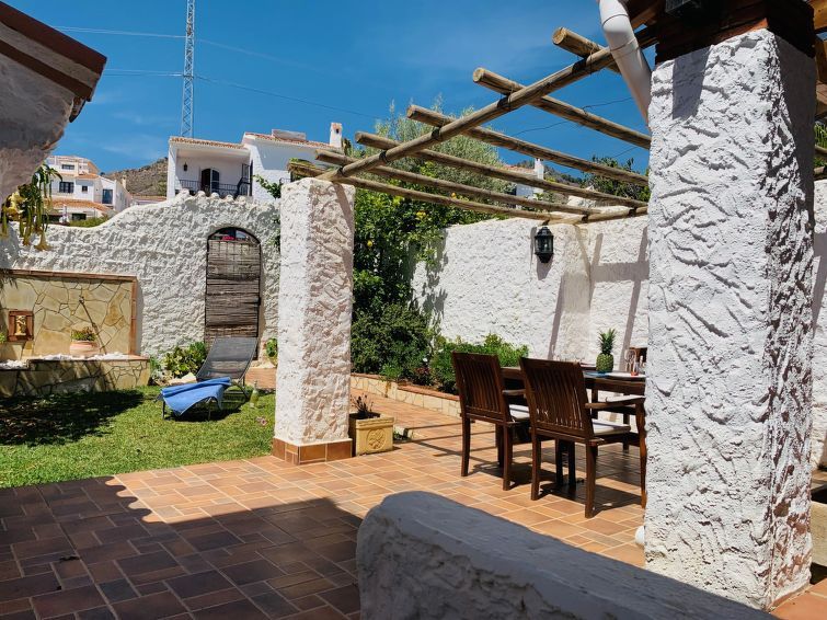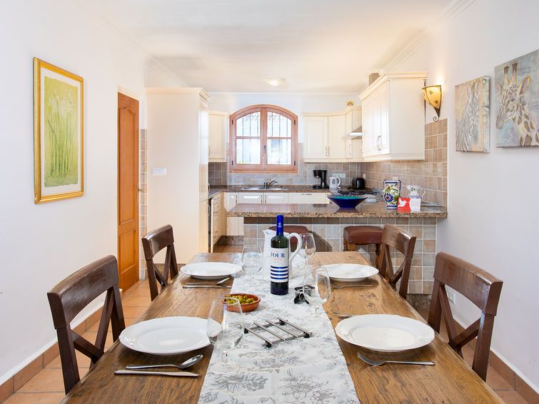 "Los Olivos de Capistrano", 3-room terraced house 121 m2. Spacious and bright, practical and comfortable furnishings: living/dining room with digital TV, air conditioning and forced-air heating. Exit to the garden, to the patio. Open kitchen (5 hot plates, oven, dishwasher, toaster, kettle, microwave, freezer, electric coffee machine, combination microwave).
