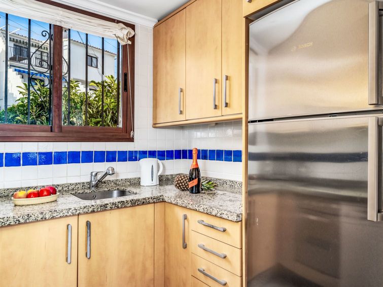 "Naranjos", 3-room terraced house 80 m2, south facing position. Spacious and bright, simple and comfortable furnishings: living/dining room with digital TV and electric heating. Exit to the garden, to the terrace. Open kitchen (3 ceramic glass hob hotplates, toaster, kettle, microwave, freezer, electric coffee machine).