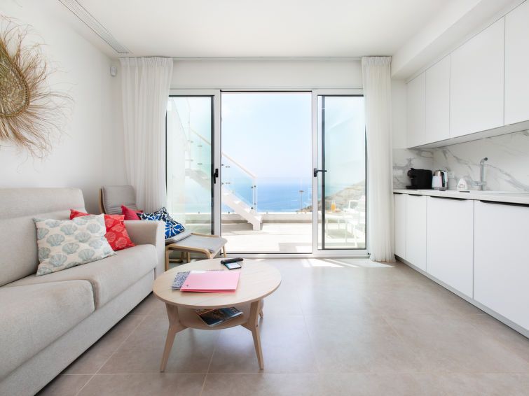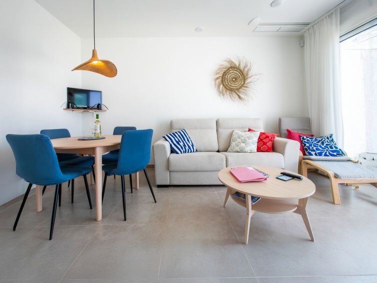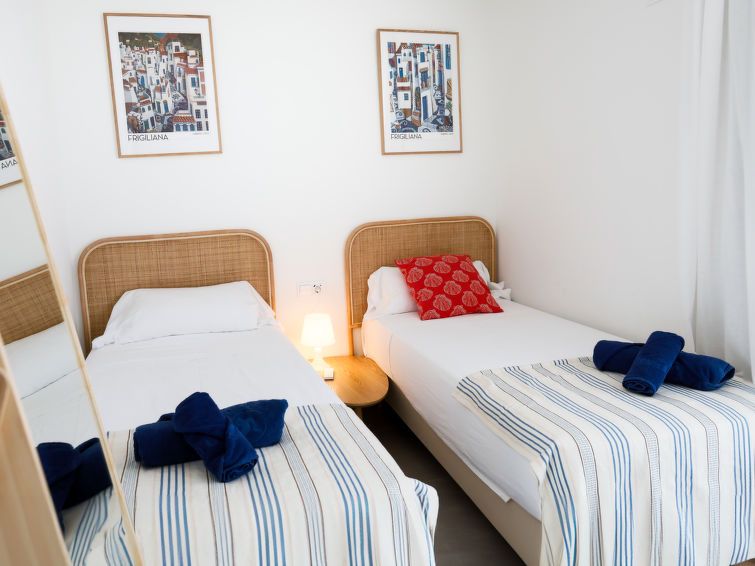 "L´agua Free Spa and Padel", 3-room apartment 68 m2. Bright, very comfortable and modern furnishings: living/dining room with digital TV, air conditioning and forced-air heating. Exit to the terrace. 1 room with 2 beds (90 cm, length 200 cm), air conditioning, fan and forced-air heating.
