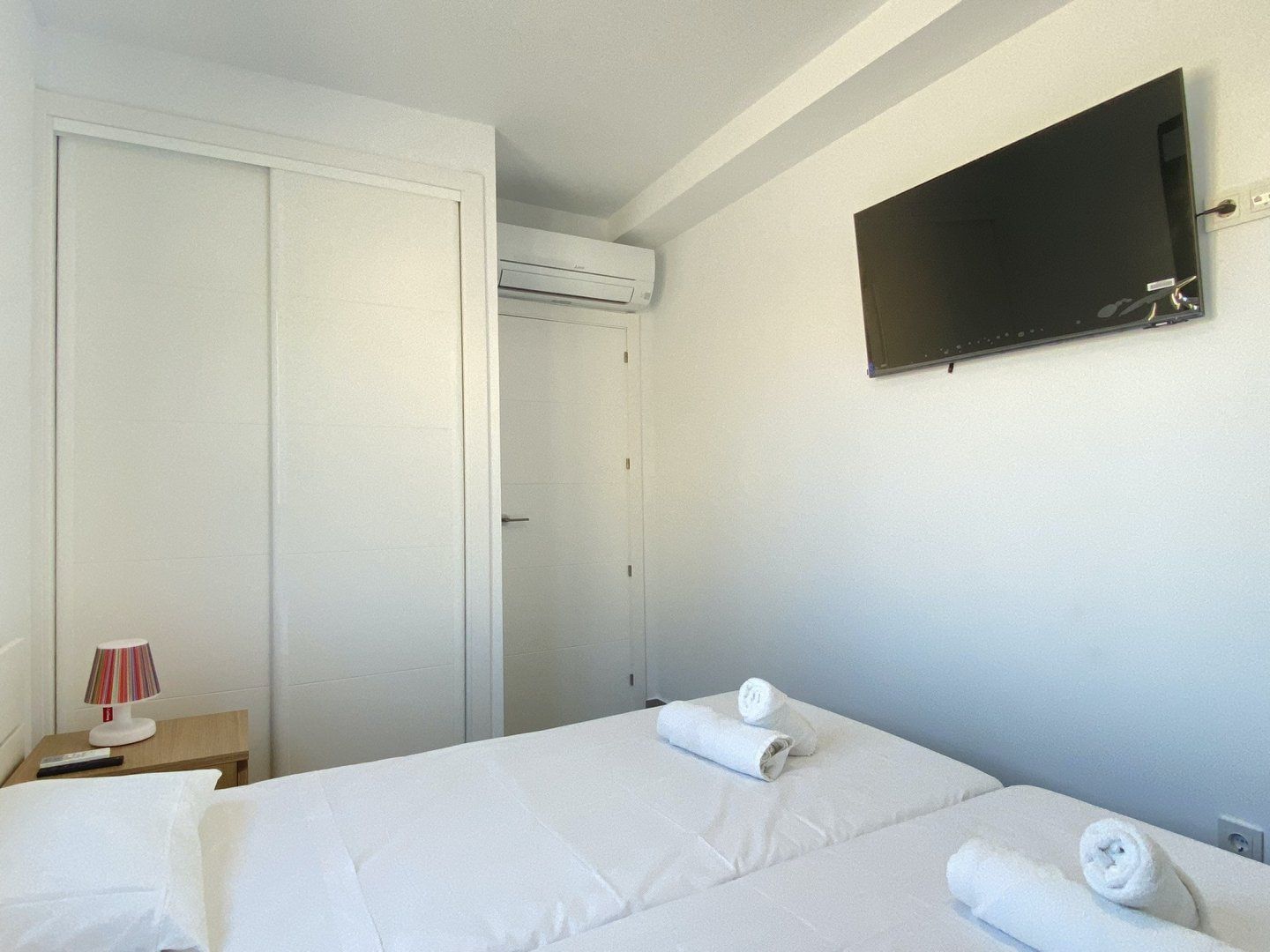 Enjoy quiet mornings watching the sunrise from one of the three terraces, enjoy a rejuvenating dip or energising workout and spend idyllic afternoons relaxing on the rooftop. Inside, you’ll find the kitchen is fully equipped with everything you could need to prepare Spanish-inspired meals, while the air-conditioned bedrooms welcome you to enjoy total relaxation. The master bedroom (with en-suite bathroom) has direct access to the terrace – and with expansive sea views, this is the perfect spot for sunset drinks.