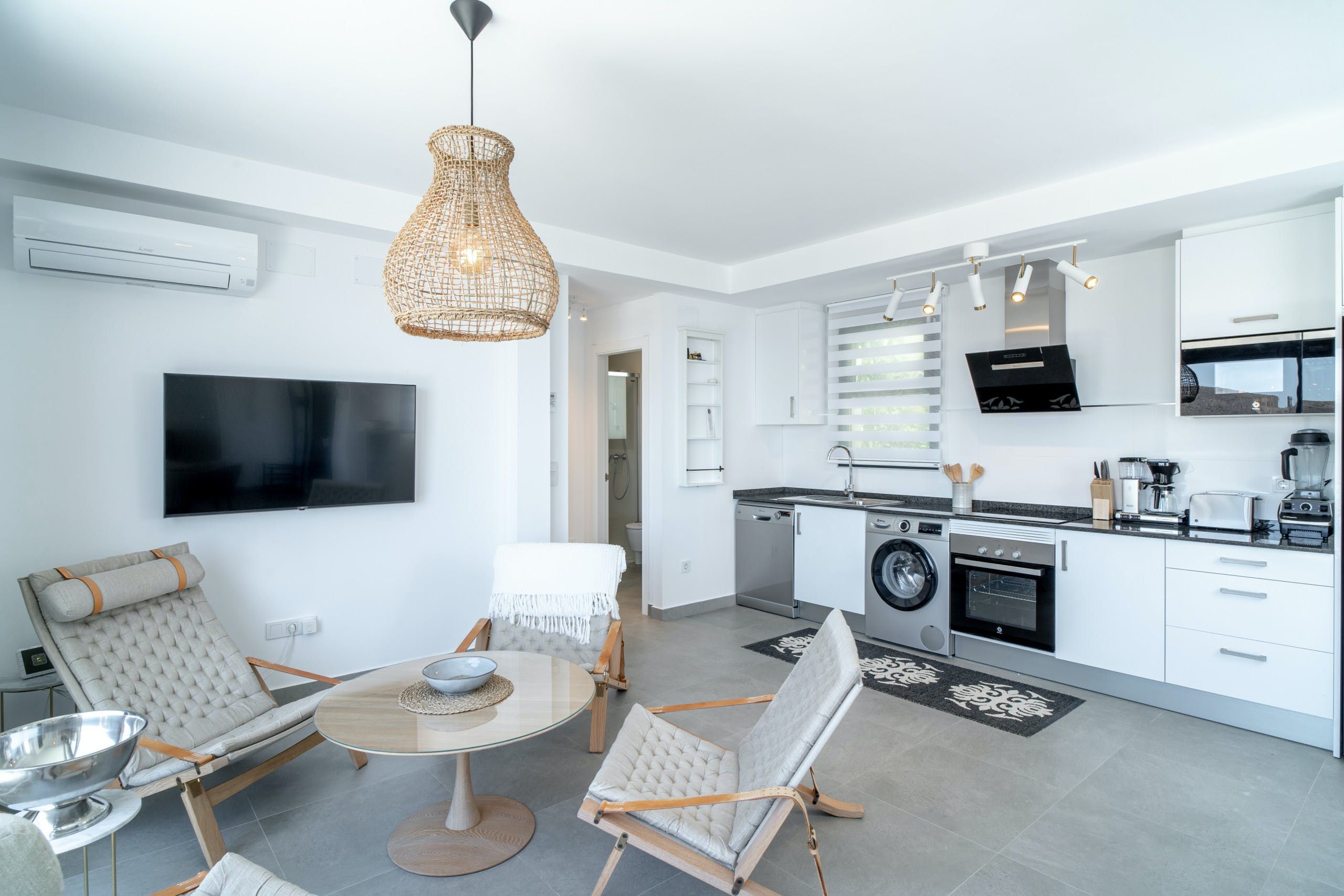 Just take a look at the sea views from this apartment’s private terraces – aren’t they beautiful? There are two terraces – our favourite is the rooftop one reached via a spiral staircase, which has plenty of room for entertaining. More outdoor space is available, but it’s shared – you can lounge by the pool or go for a refreshing dip. There’s also a communal gym to maintain your fitness regime while away. Inside the apartment itself, there are more Mediterranean Sea vistas to enjoy, and there’s a lovely outlook from both bedrooms. Out and about, explore the beaches or charming towns of Nerja and Torrox. We’d recommend hiring a car to make the most of your stay.