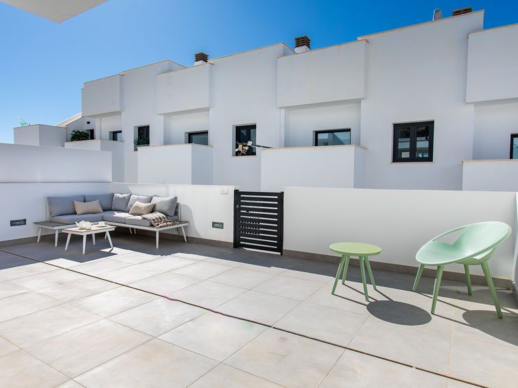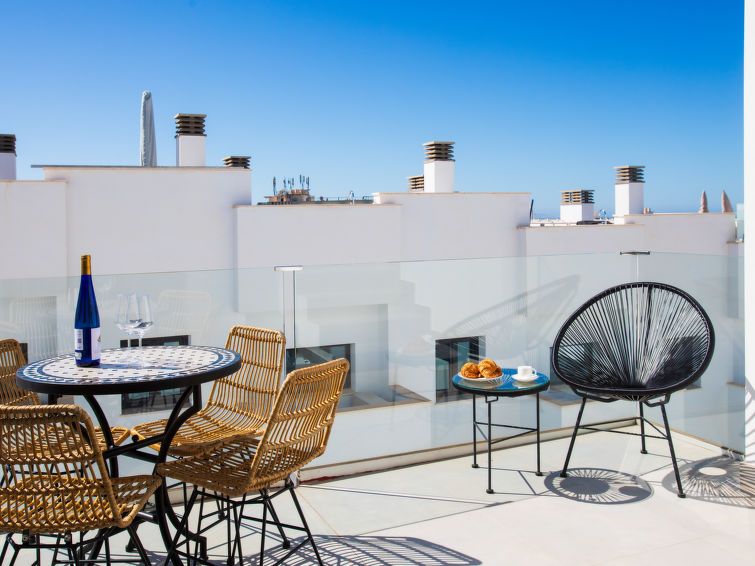 "Skyhill", 4-room terraced house 110 m2. Spacious and bright, comfortable and modern furnishings: 1 room with 2 beds (90 cm, length 200 cm), air conditioning and forced-air heating. Exit to the terrace. 1 room with 1 double bed (150 cm, length 200 cm), shower/WC, air conditioning and forced-air heating.