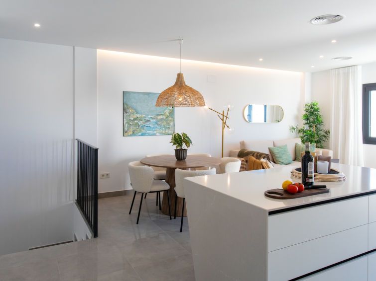 The house is very spacious and decorated with great taste. On all floors there is a terrace and on top a beautiful terrace with sea view. The area is very quiet and the shared pool is a few meters away. We enjoyed this beautiful house