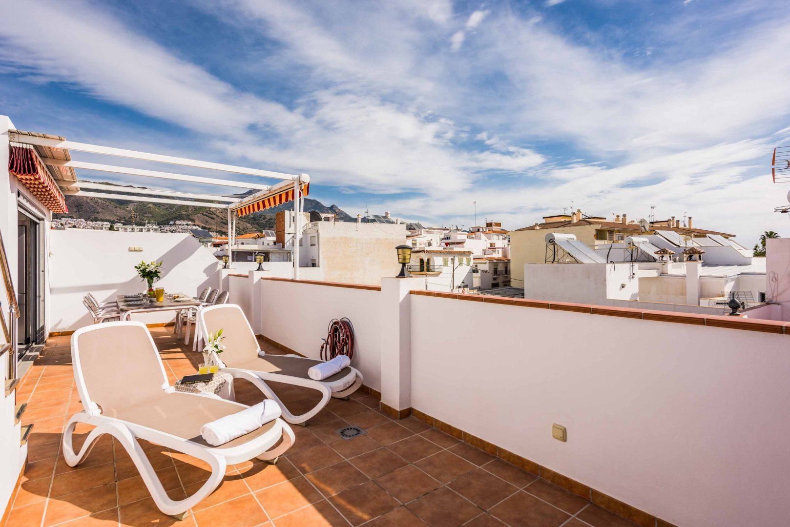 Three levels of comfort await at this home in the heart of Nerja. It won't suit guests who struggle with stairs, but it's bound to be a hit for those who don't mind multi-floor living. Head up to the top-floor terrace to take advantage of the private plunge pool and alfresco dining area. We're big fans of the second kitchen on this level, which makes it easy to whip up a meal without having to clamber up and down. A few of the bedrooms are on the smaller side – and they're all on the first floor – but two have desks for remote working. Location-wise, Playa Burriana and the ever-popular Balcón De Europa are just twenty minutes away on foot.