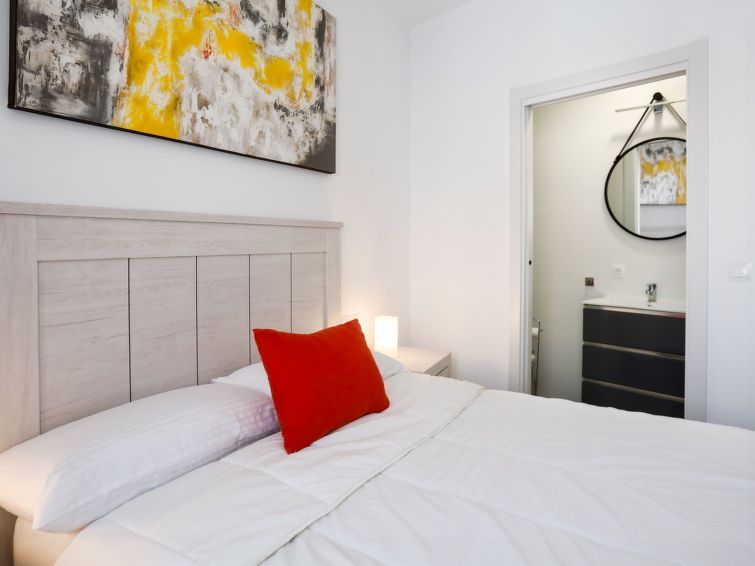 "Edificio Ulia", 3-room apartment 65 m2. Beautiful and modern furnishings: living room with digital TV, air conditioning and boiler (80 litres). 1 room with 1 french bed (1 x 150 cm, length 190 cm), air conditioning. 1 room with 2 beds (90 cm, length 190 cm). Open kitchen (dishwasher, 3 ceramic glass hob hotplates, toaster, kettle, microwave, freezer, electric coffee machine).