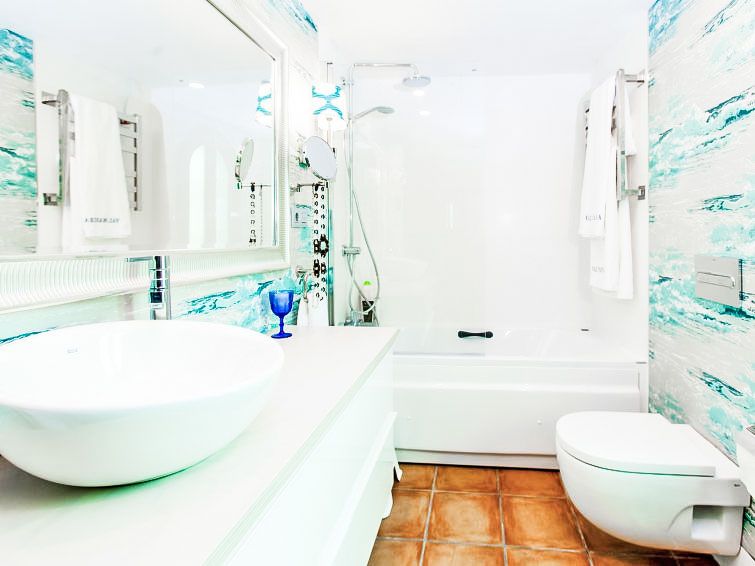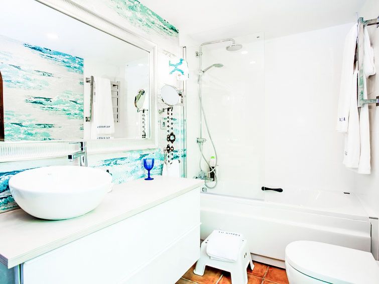 "Zurbarán by the Sea", 4-room villa 150 m2, south-east facing position. Spacious, fully renovated in 2016, very beautiful and modern furnishings: living/dining room with open-hearth fireplace, TV and digital TV. Exit to the patio. 1 room with 1 bed (150 cm). 1 room with 2 beds (90 cm).