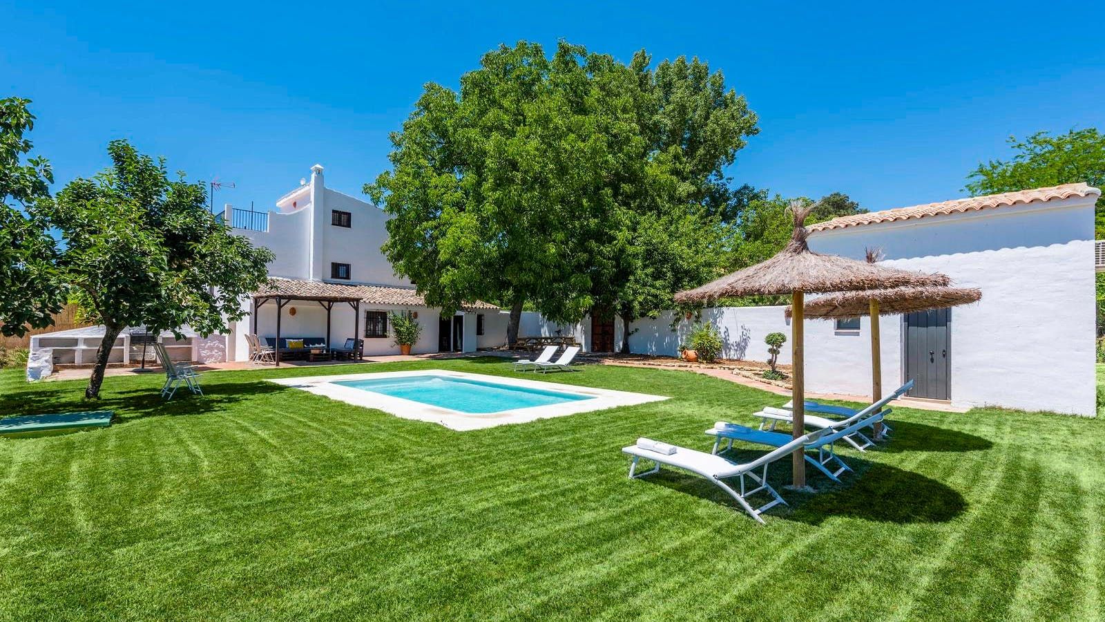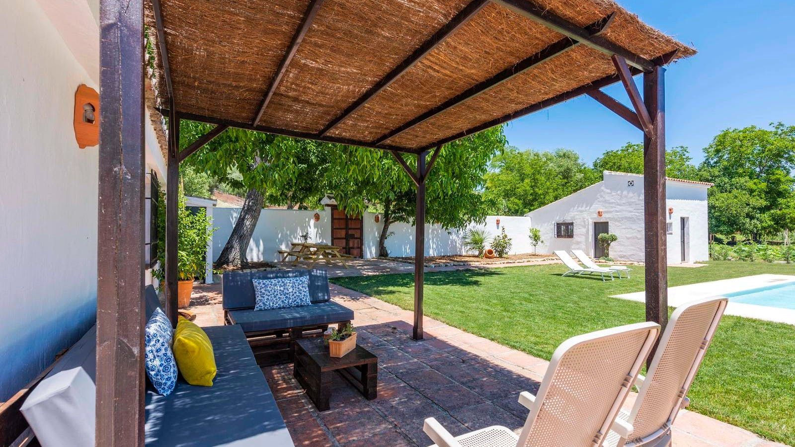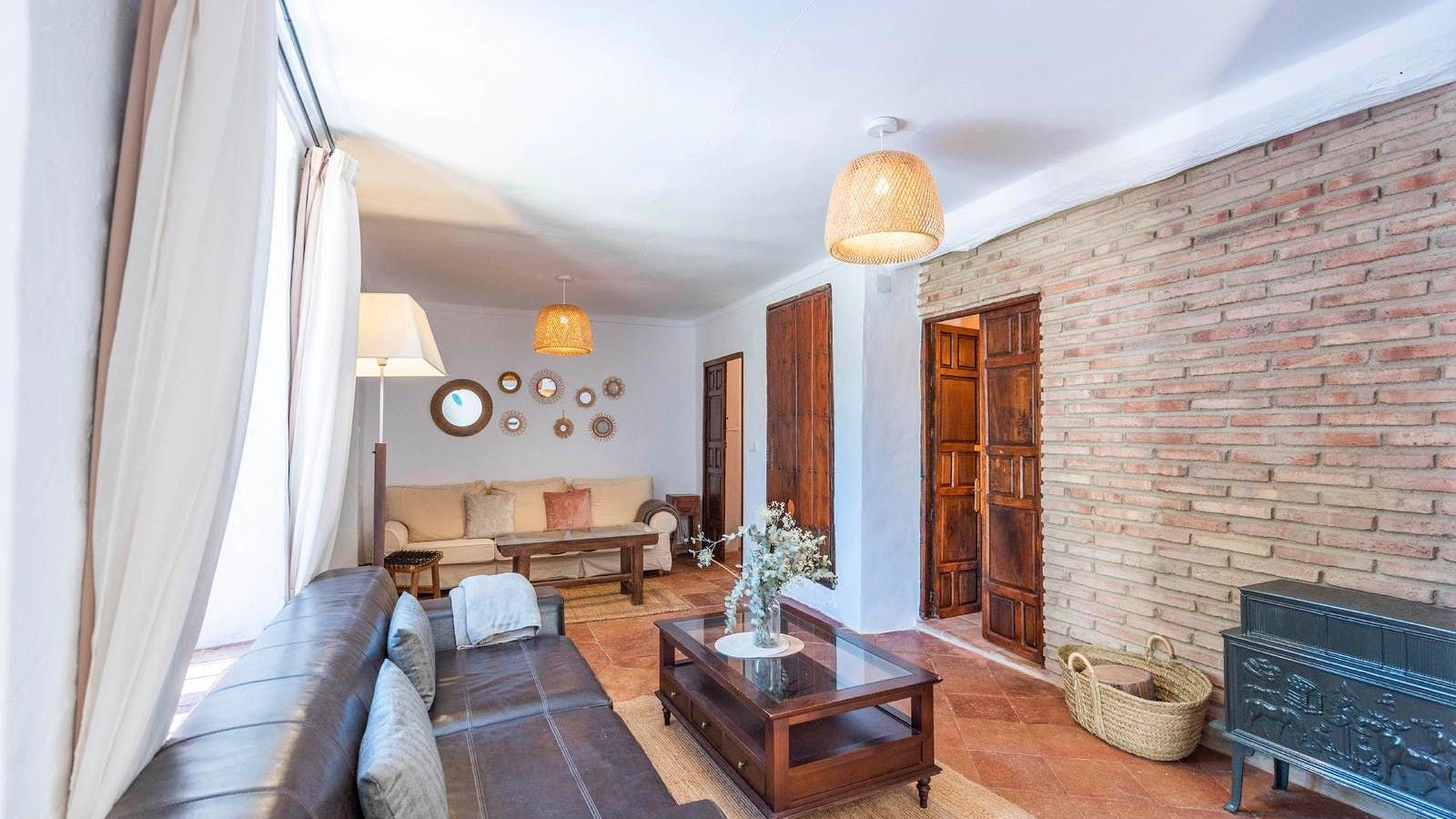Previously an old Andalusian farmhouse, this villa has retained much of its traditional charm. Located just 10 kilometres from Ronda, this home’s rural location offers plenty of peace and privacy. Situated in a beautiful valley, you’ll be surrounded by natural parks like the Sierra de las Nieves National Park, so you’re ideally positioned to enjoy some long walks with your canine companion. There’s a separate one-bedroom apartment here, which may appeal to a couple or any teenagers in the group who want their own space. Outside you’ll have a lawned garden to relax in, featuring a private pool, hammocks, a barbecue and a shaded dining area.