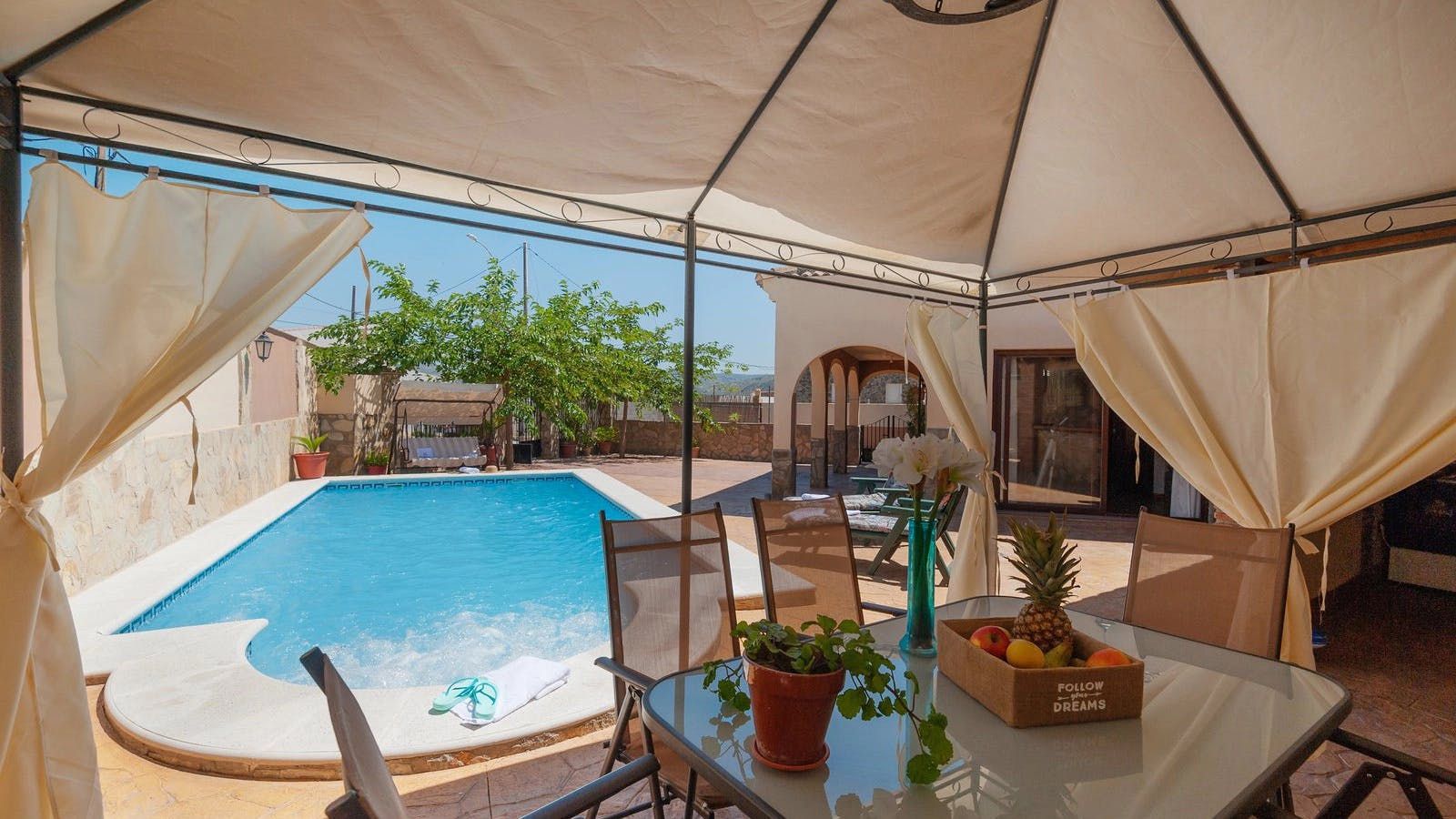 This charming Alcalá la Real home places central Andalusia at your fingertips. The walled pool area becomes a personal oasis here, complete with a shaded alfresco dining area that's a fine spot for lunch. The kitchen has everyone you need too, which is a bonus when the nearest restaurant is several miles away. We found the interior a little dated, and the living room area isn't large enough to accommodate everyone, but we suspect you'll be spending more time outside than in here anyway. With just one shower for four bedrooms, guests may have to coordinate, but the additional outdoor WC provides some flexibility.