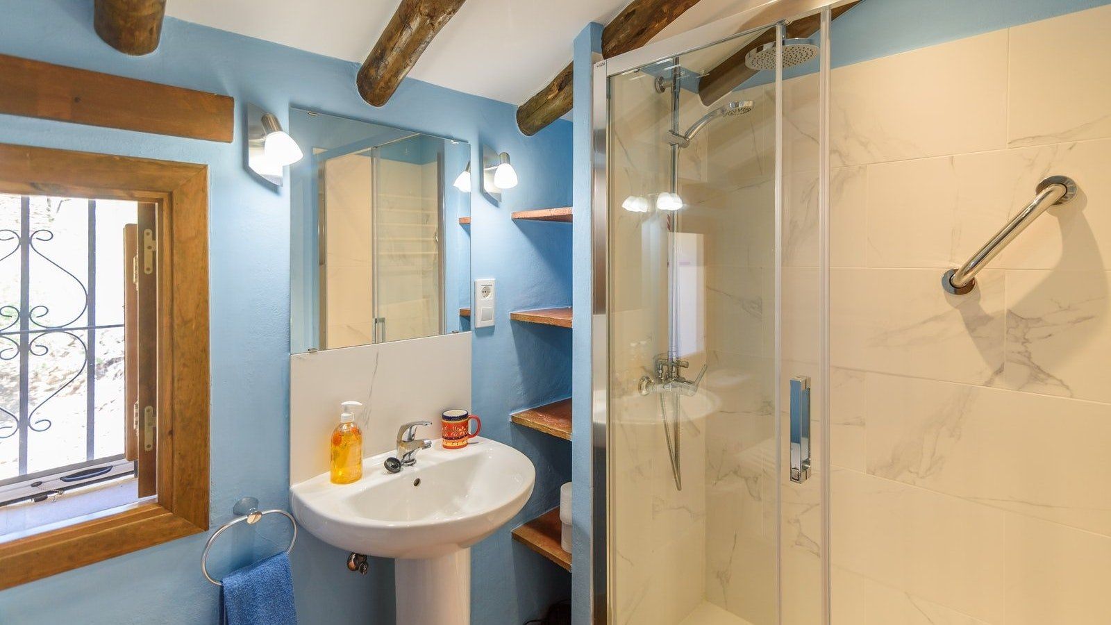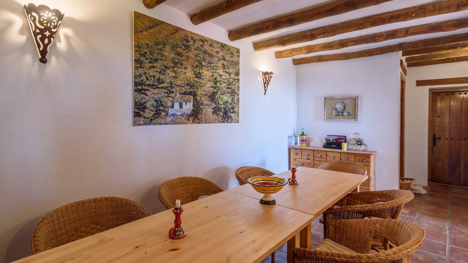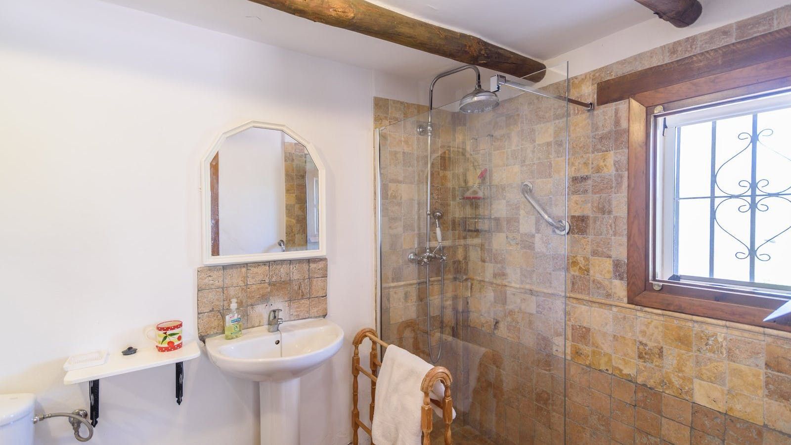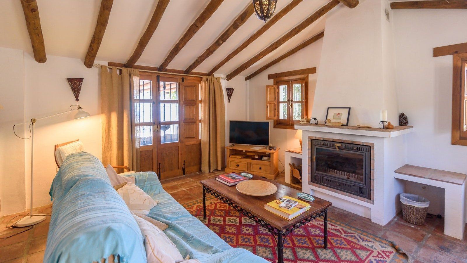 Inside, beamed ceilings and a traditional fireplace give this home a rustic feel, while the shaded porch and private pool at the back of the house make you feel as though you’ve been transported to your very own holiday resort. Kick back and relax with an evening aperitivo in the open air or stretch out on the living room sofa and lose yourself in a paperback from the bookshelf. Then when it’s time to eat, come together at the dining table for a tapas feast prepared in your fully stocked kitchen. Delish.