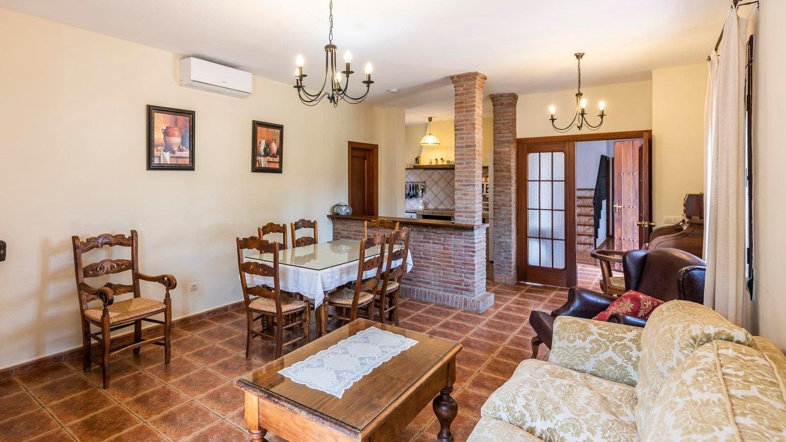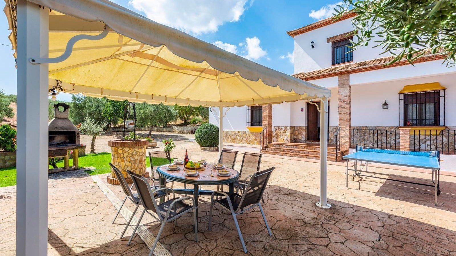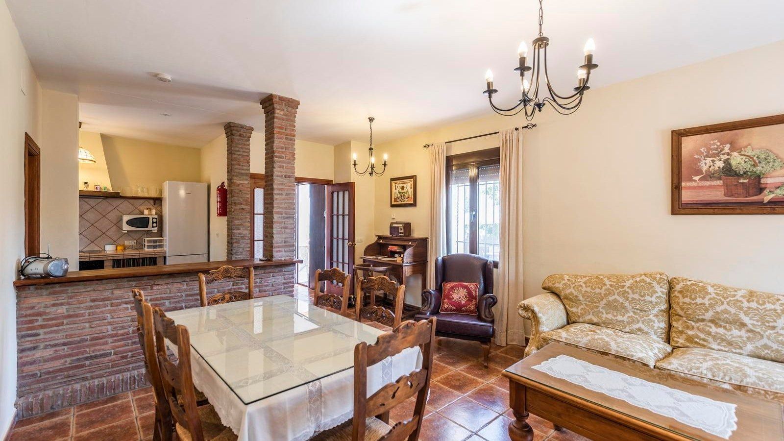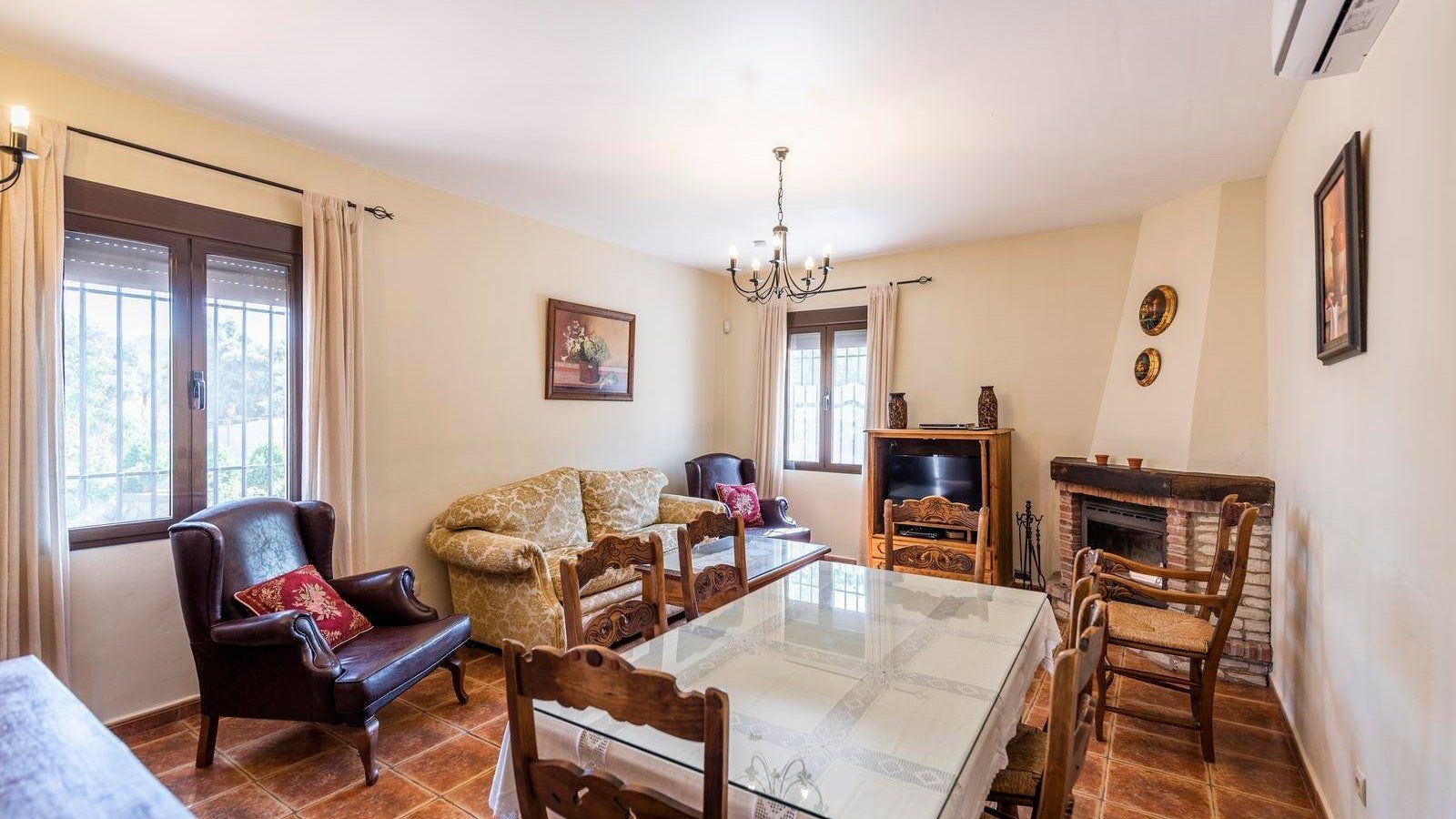 This rustic, rural home in the Andalusian countryside is perfect for those in need of some good old-fashioned R and R. Nestled in the Serranía de Ronda and surrounded by olive trees you’ll be afforded the great privilege of getting back to nature. Make the most of the peace and quiet and recline or read on the sun loungers in the garden before cooling off with a refreshing dip in your private pool. After having indulged in some much needed me time, why not spoil friends and family and spend the afternoon preparing a feast of grilled meat and fish on the barbecue? Serve up and dine alfresco on the covered terrace. Later on, savour a siesta, or, if you’re feeling competitive, play at ping pong before gathering, wine in hand, to watch the sunset behind the mountains. At chillier times of year, you’ll love cosying up in the living cum dining area for a card game by the fire.