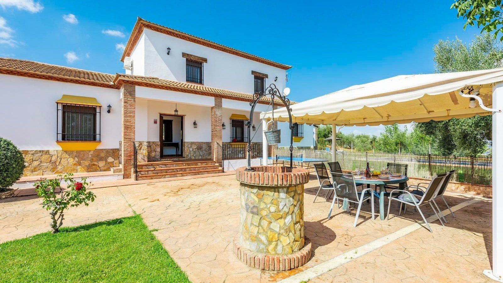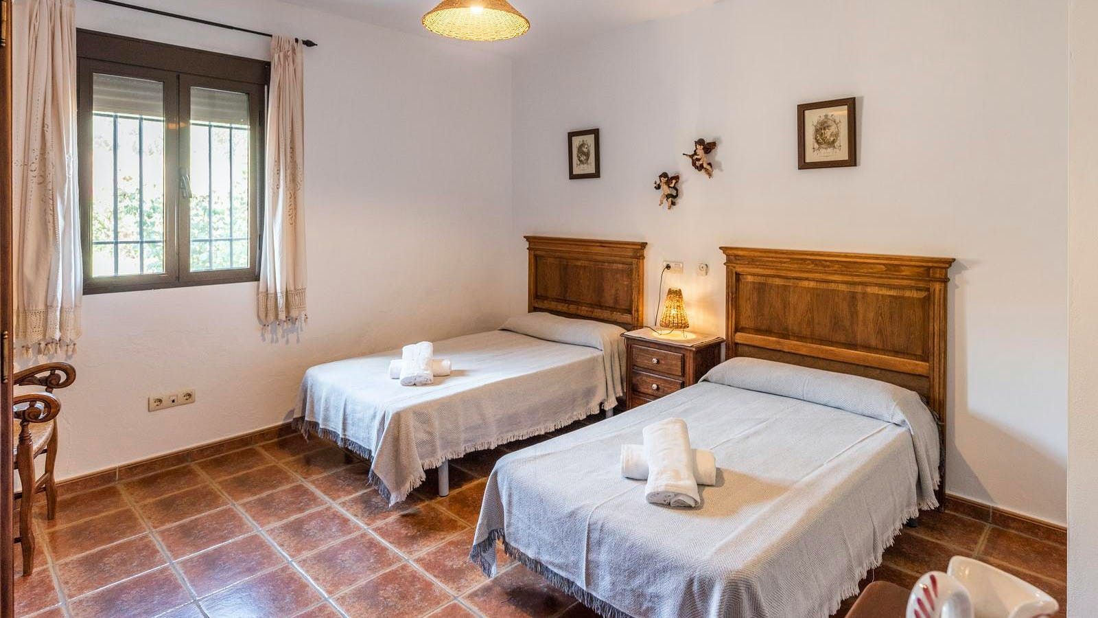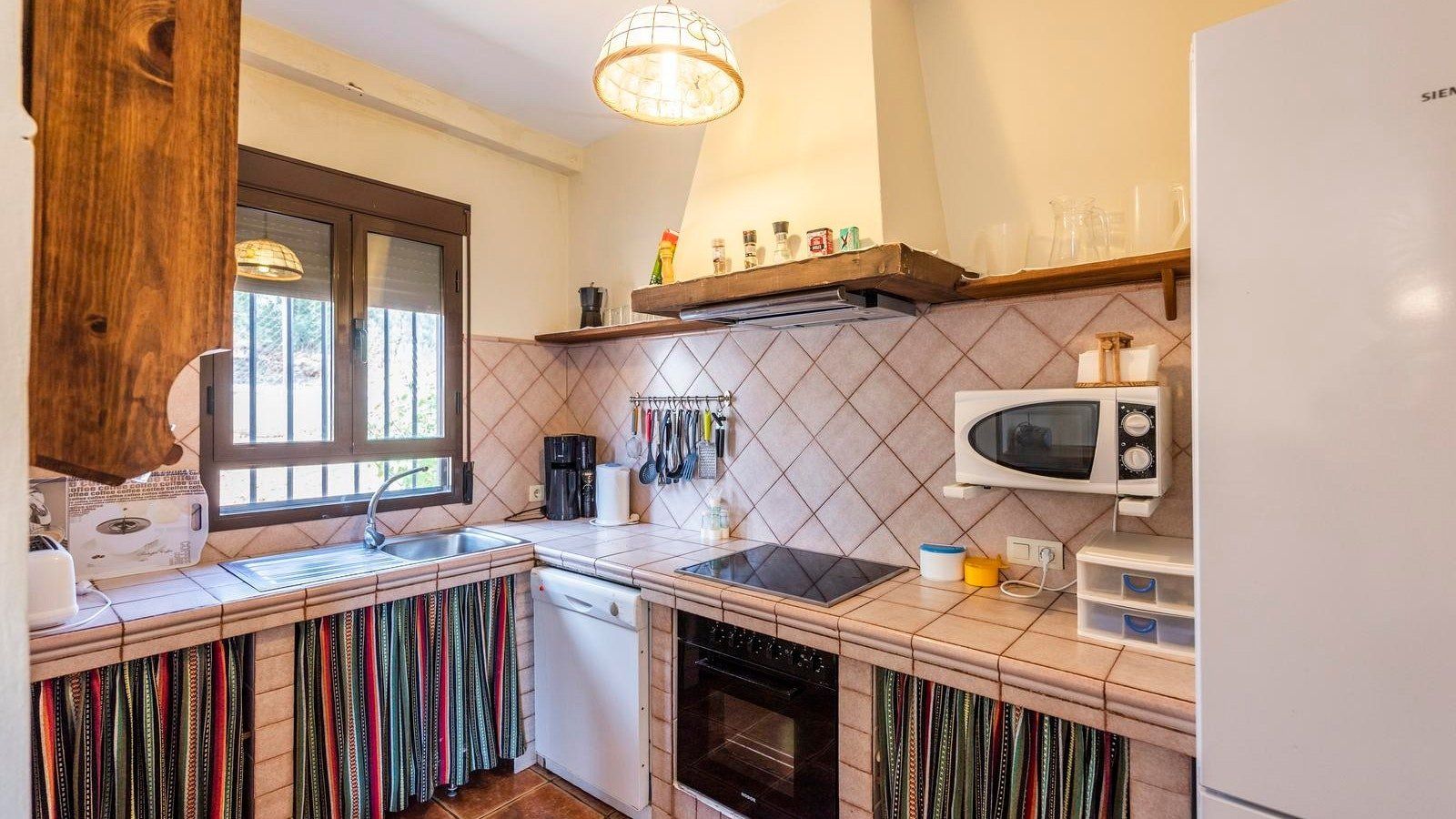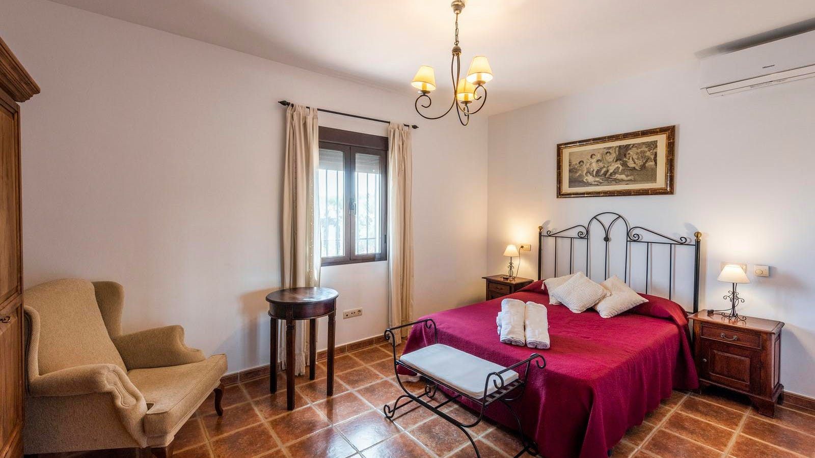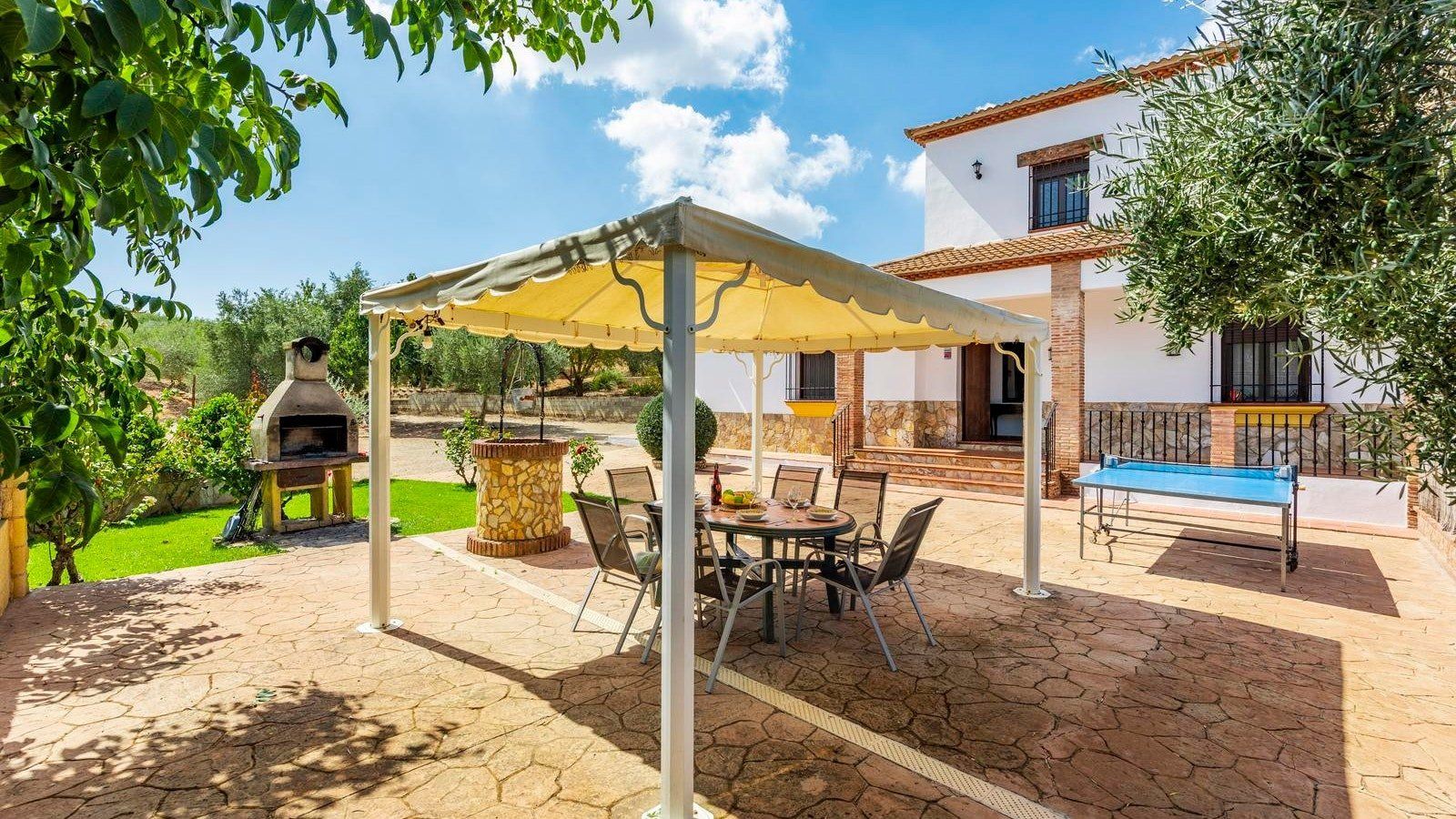 This rustic, rural home in the Andalusian countryside is perfect for those in need of some good old-fashioned R and R. Nestled in the Serranía de Ronda and surrounded by olive trees you’ll be afforded the great privilege of getting back to nature. Make the most of the peace and quiet and recline or read on the sun loungers in the garden before cooling off with a refreshing dip in your private pool. After having indulged in some much needed me time, why not spoil friends and family and spend the afternoon preparing a feast of grilled meat and fish on the barbecue? Serve up and dine alfresco on the covered terrace. Later on, savour a siesta, or, if you’re feeling competitive, play at ping pong before gathering, wine in hand, to watch the sunset behind the mountains. At chillier times of year, you’ll love cosying up in the living cum dining area for a card game by the fire.