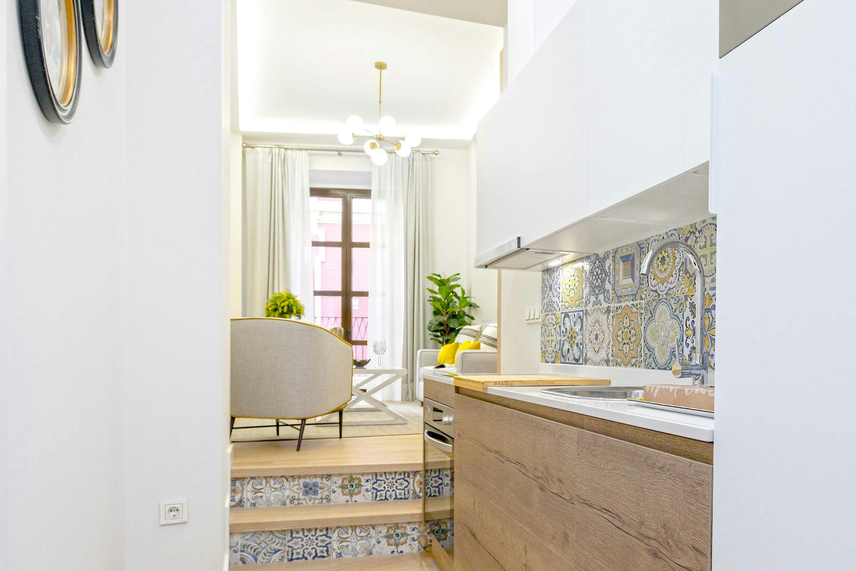 This compact home in Seville offers both comfort and convenience. It's well-located in the centre, close to Plaza del Museo, and other top cultural sights. Plus, you'll find an endless array of cafes, bars, and restaurants right outside the door. Truth be told, the living space and kitchen are on the smaller size – especially when at full capacity with one person on the living room sofa bed. That said, for a small family or group of friends in town for a short stay, it would make a solid choice.