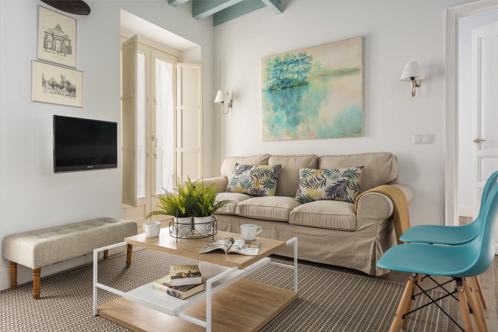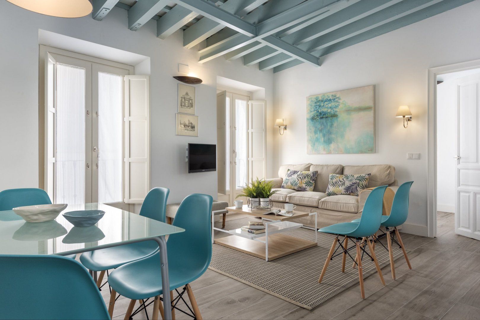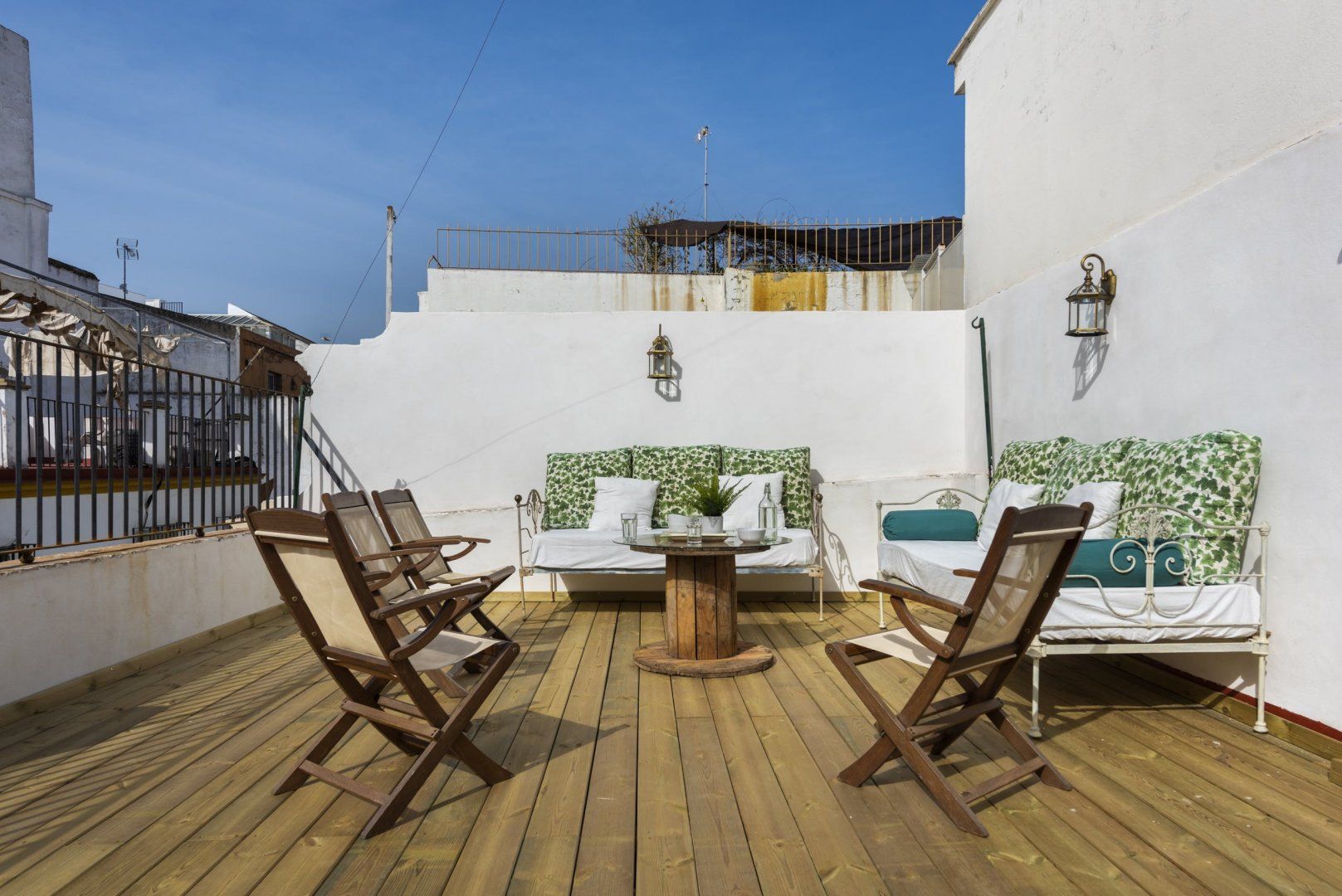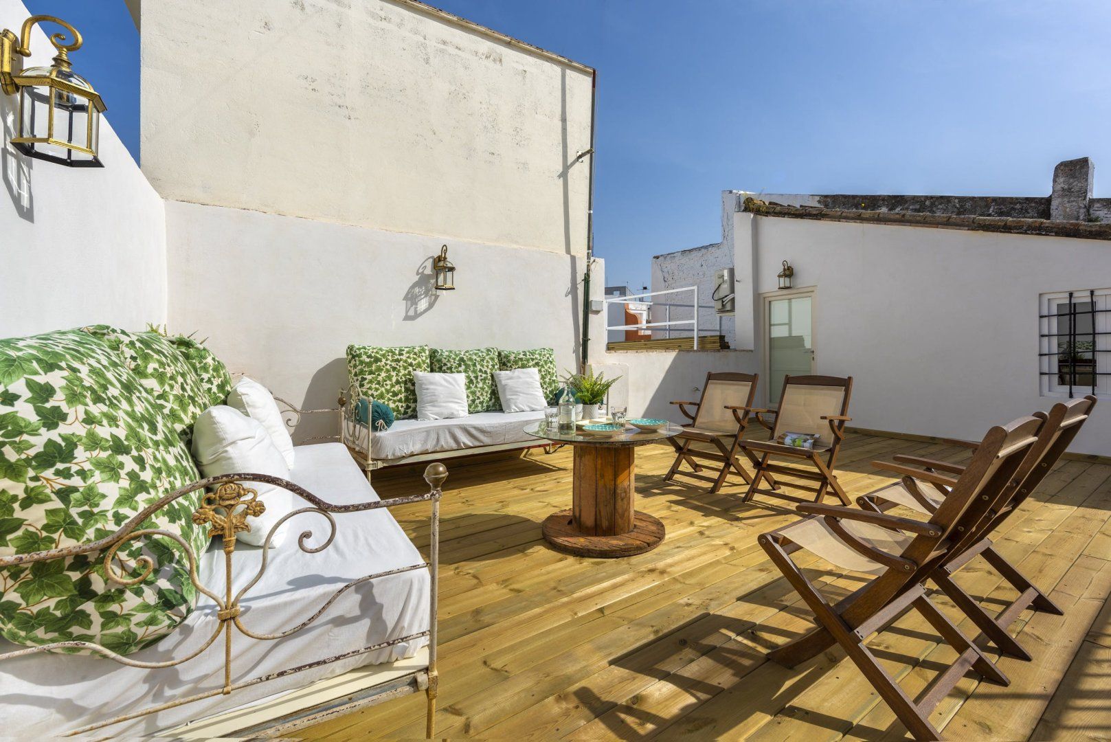 Located in Seville’s El Arenal quarter, this handsome two-level apartment places you perfectly to make the most of the city’s historic sights. An easy walk from the Catedral de Sevilla, the Setas de Sevilla and the Royal Alcázar, you’ve got plenty to fill your days nearby. When you’re not out exploring, however, the home’s private sun terrace is the ideal spot to unwind and work on your tan. And should the Spanish sun get too hot, you need only cool down inside among the beamed ceilings, enjoying the breeze flowing through the living room’s French doors.