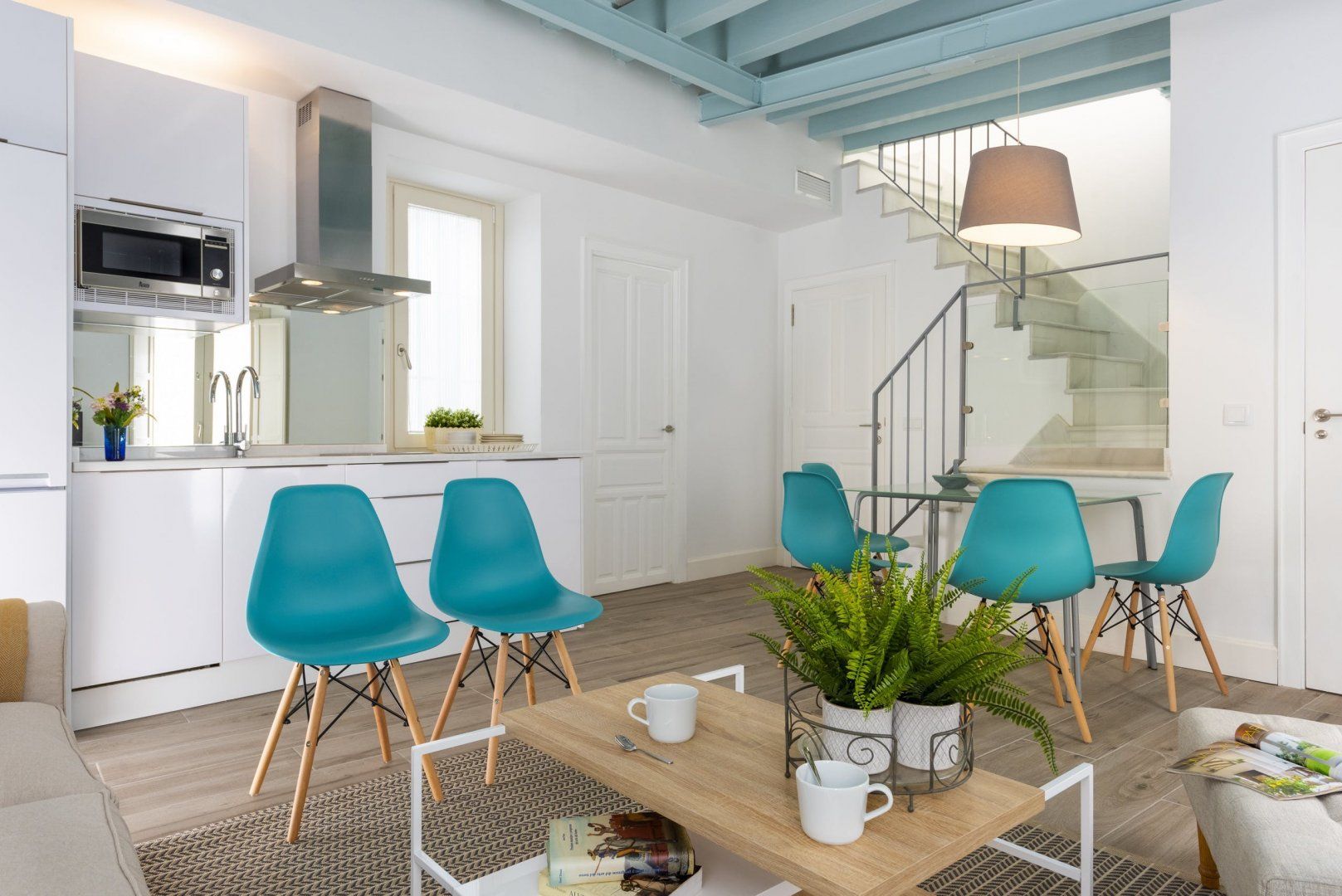 *There's no lift here. You'll need to be able to climb stairs to reach the entrance of the home. This apartment is also laid over two floors with internal stairs between them. *If you're travelling with little ones, your host can provide a cot and high chair for free. You'll need to request them in advance. *Given the home's central spot, expect to hear some street noise throughout your stay. *If you're travelling for work, you won't find a dedicated desk here. However, the dining table doubles up as a laptop-friendly workspace. *We recommend skipping the car here and exploring Seville on foot or by public transport instead.
