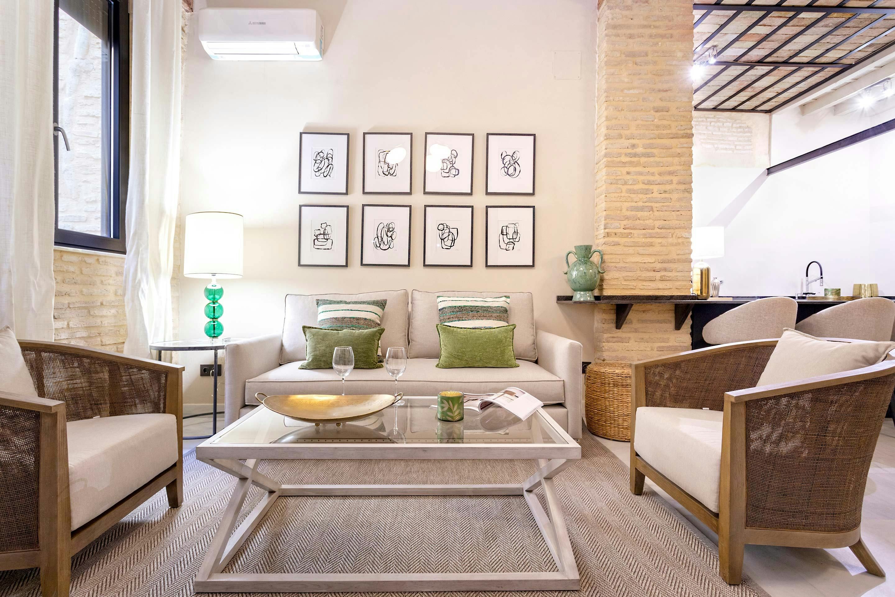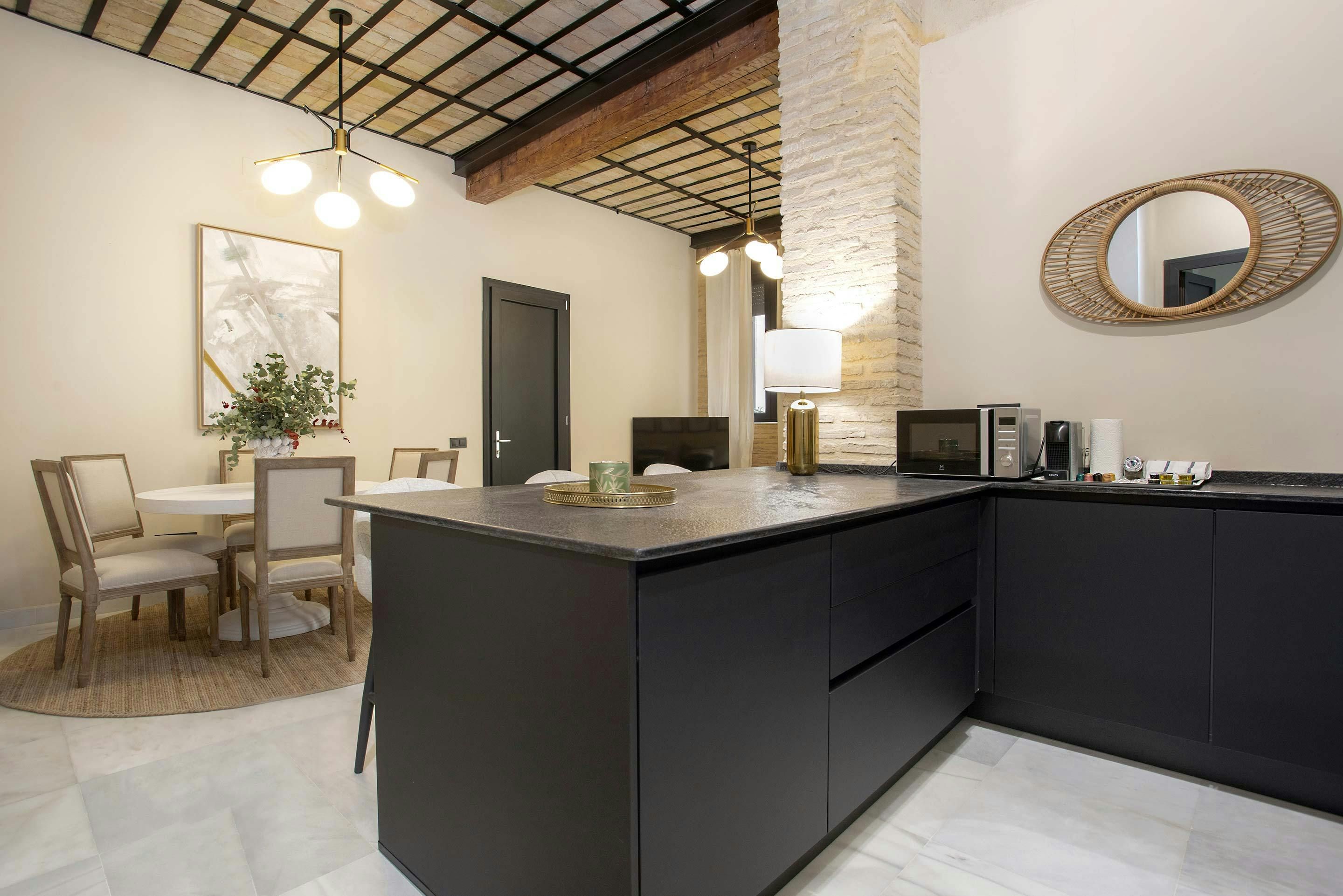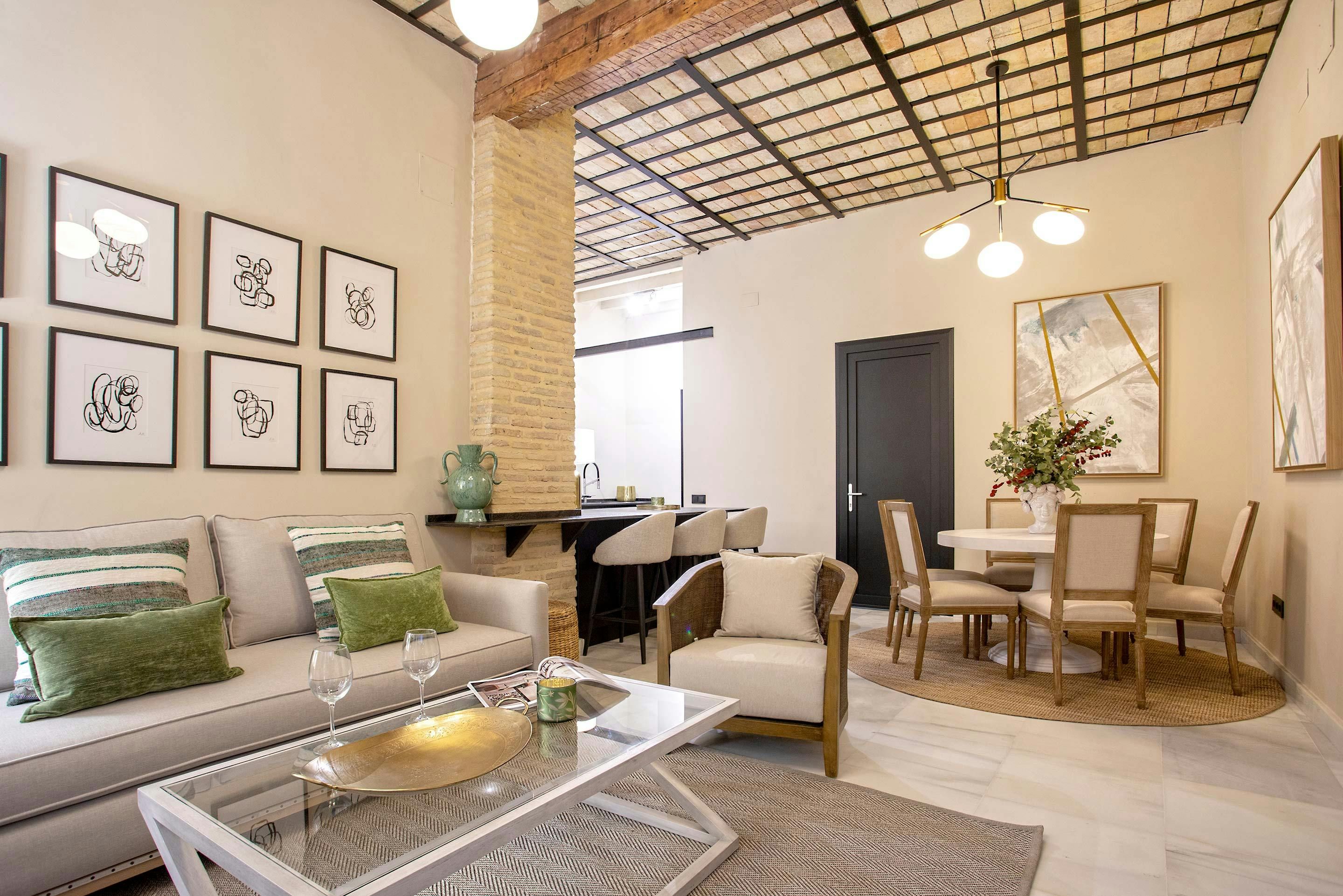 This modern apartment is just a few minutes’ walk from the centre of Seville. Plus, there are an array of shops, tapas bars, and restaurants right on your doorstep. So, the location is a tick, what about the apartment? Well, with its high ceilings, you instantly get a feeling of space. And we love the character features. The living room is flexible, too, as it has a sofa bed. This place provides a comfortable and stylish retreat after a day of sightseeing.