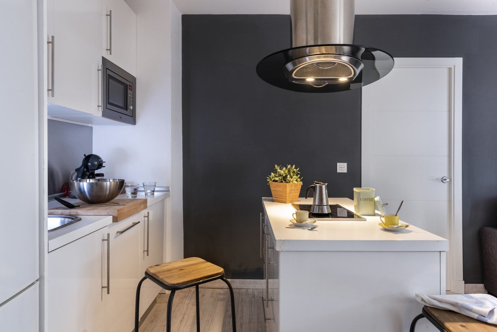 Contemporary designs present an open space for a group of up to four guests to come together and socialise over a bottle of local wine and delicious Spanish culinary delights. We particularly enjoy the soothing setting of the bedroom, with atmospheric lighting and a stylishly unique headboard – sinking into bed after an action-packed day out in the city couldn't be more appealing.