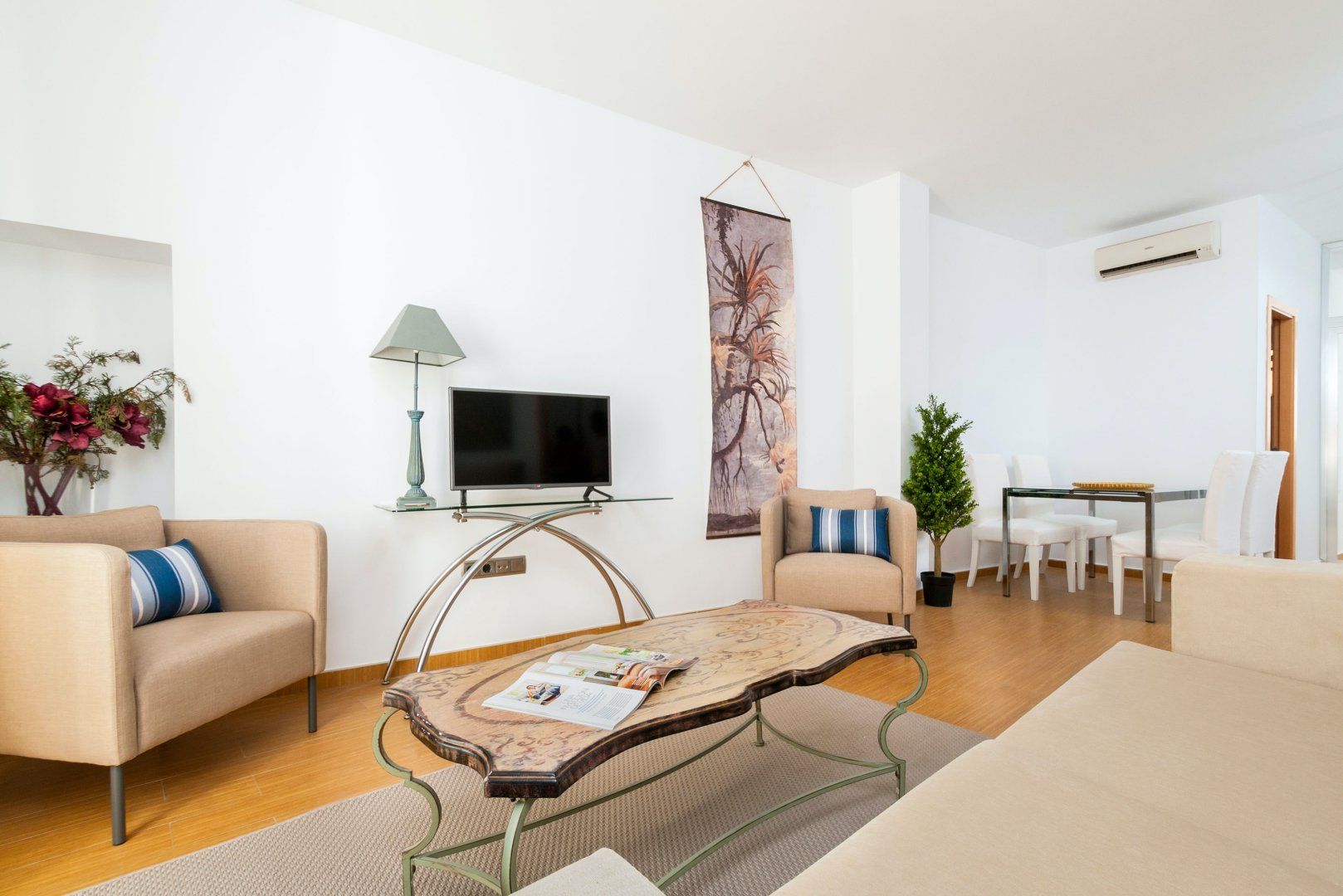 With two outside spaces and an enviable downtown location, this bright apartment is ideal for first-time visitors and return travellers alike. Inside, it’s comfortable and practical. There’s an open-plan living area with comfortable seating and a fully-equipped kitchen with all the accoutrements you need for plating up home-made tapas. Spend warm afternoons on your terrace snoozing in the hammock or kicking back on the rattan couch with an iced coffee in hand.