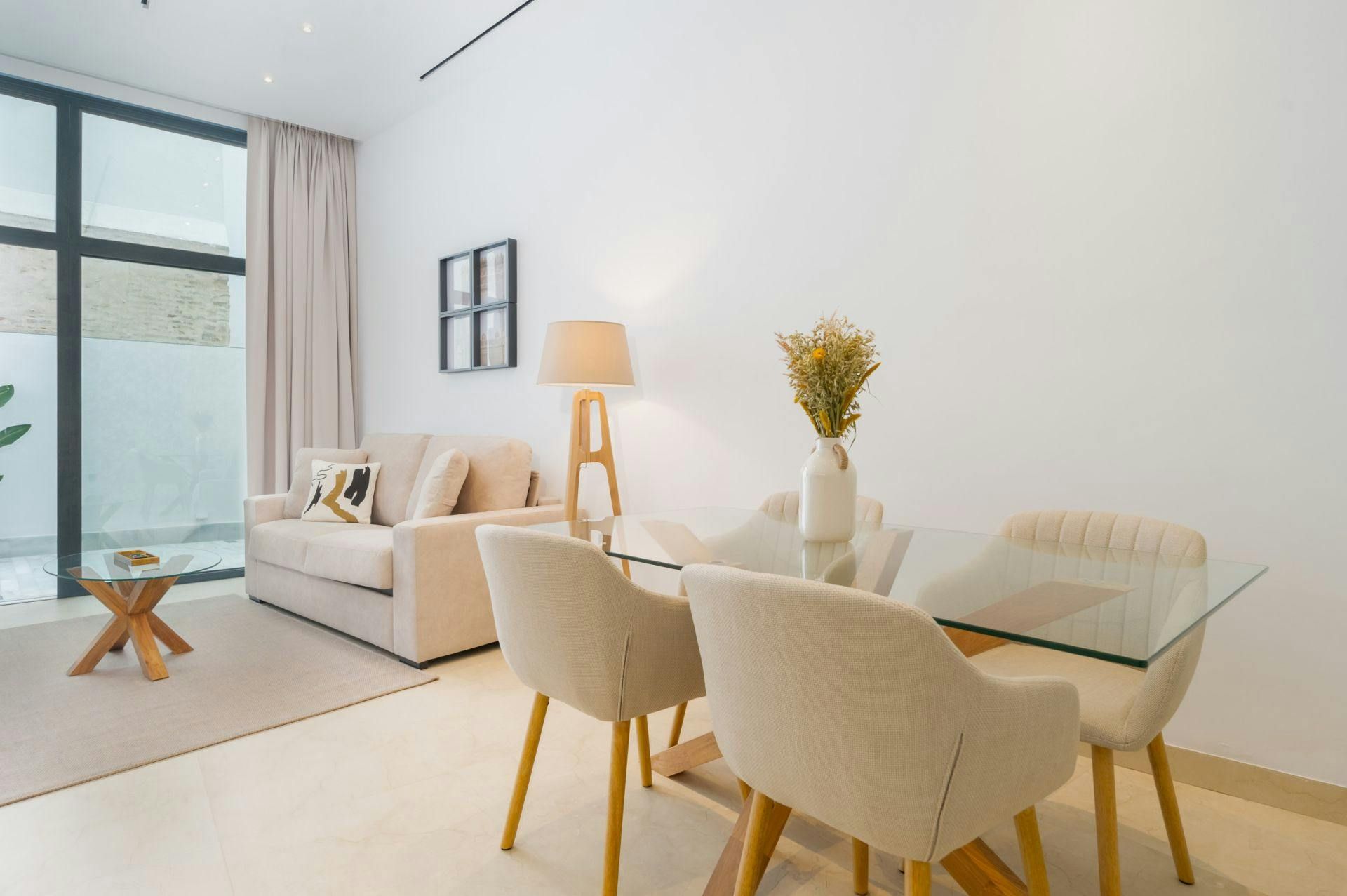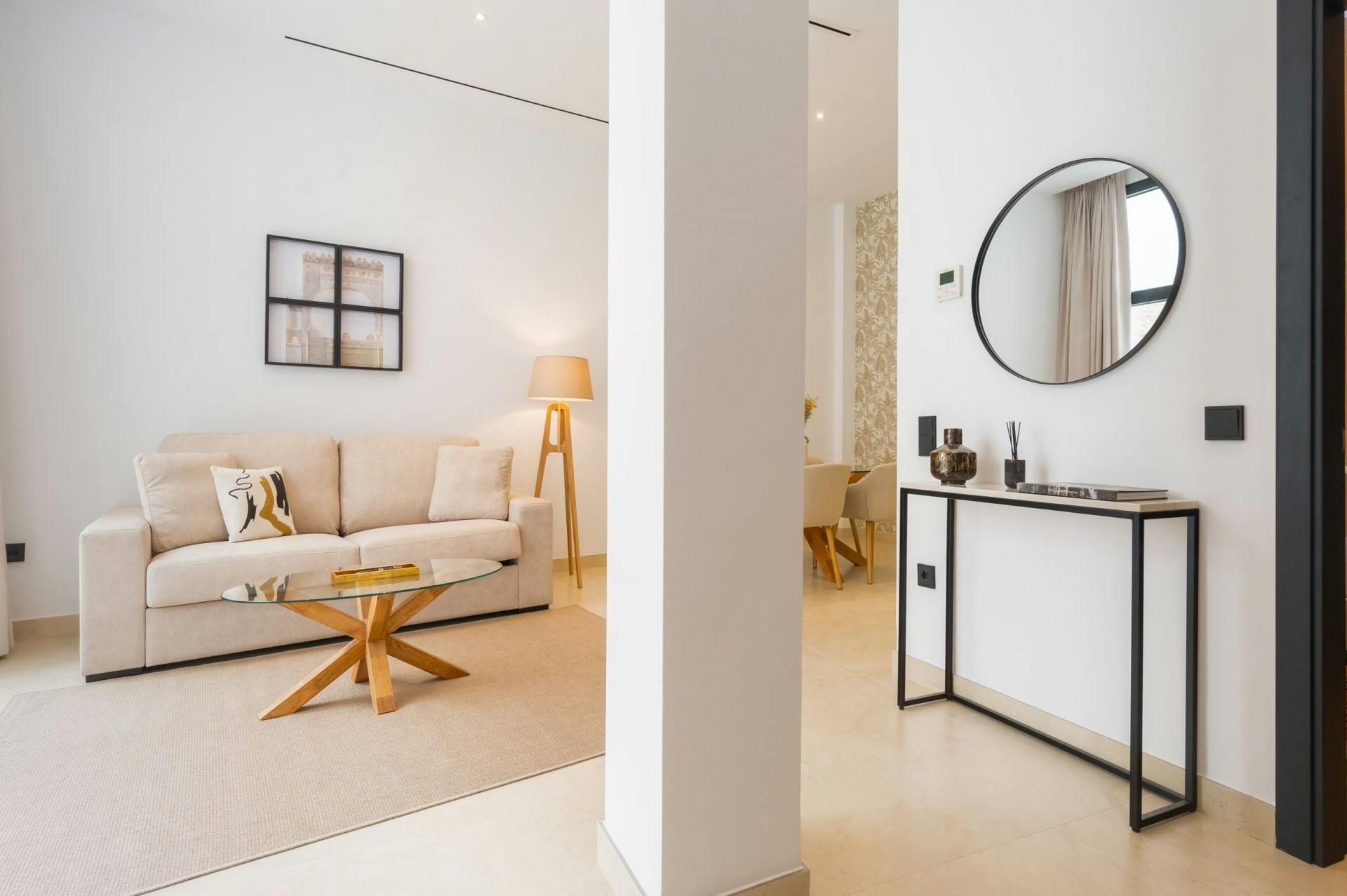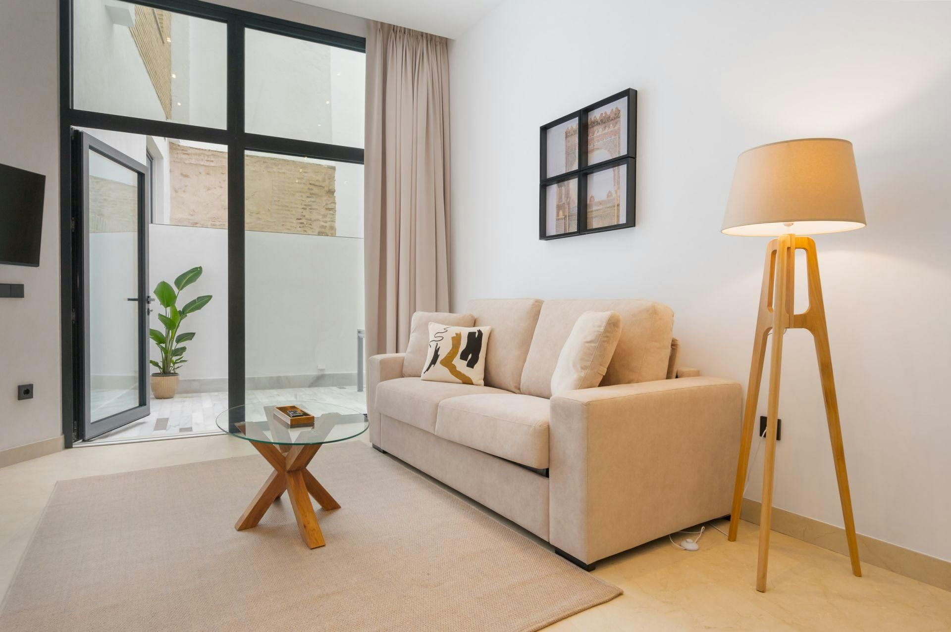 On the edge of Seville’s city centre – close enough to still feel like part of the action but far enough away to avoid the loud hustle and bustle – this ground-floor apartment feels like a welcome refuge. White walls and soft light frame a calm, contemporary space — a king-size bed dressed in crisp linen, a living room that opens onto a quiet private patio, and a kitchen that invites slow breakfasts before stepping out into the streets. When you do, you’ll be spoilt for choice for things to see – the iconic Setas de Sevilla is just a ten-minute walk away, and it’s just a bit further until you’re in the historic heart of Seville.
