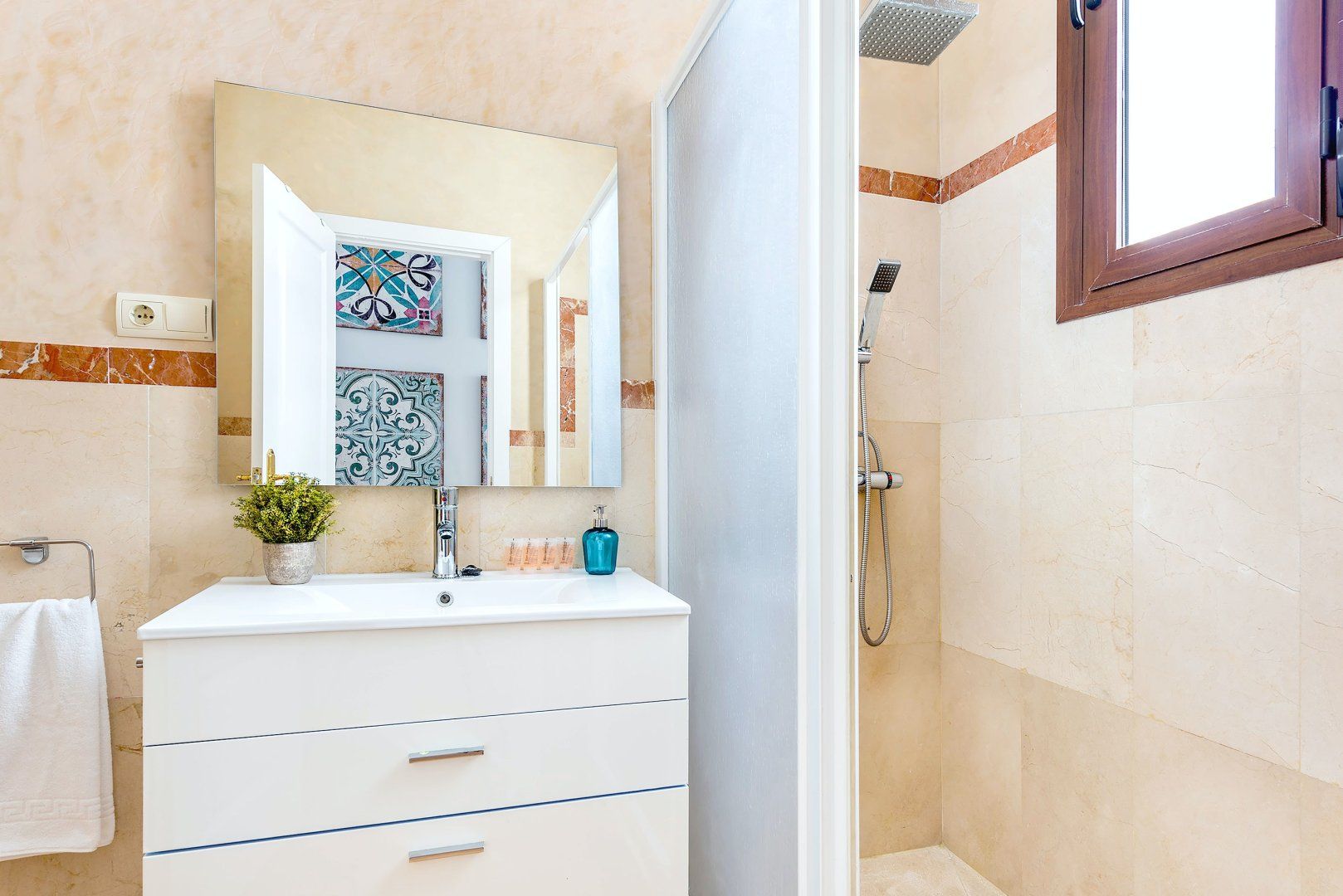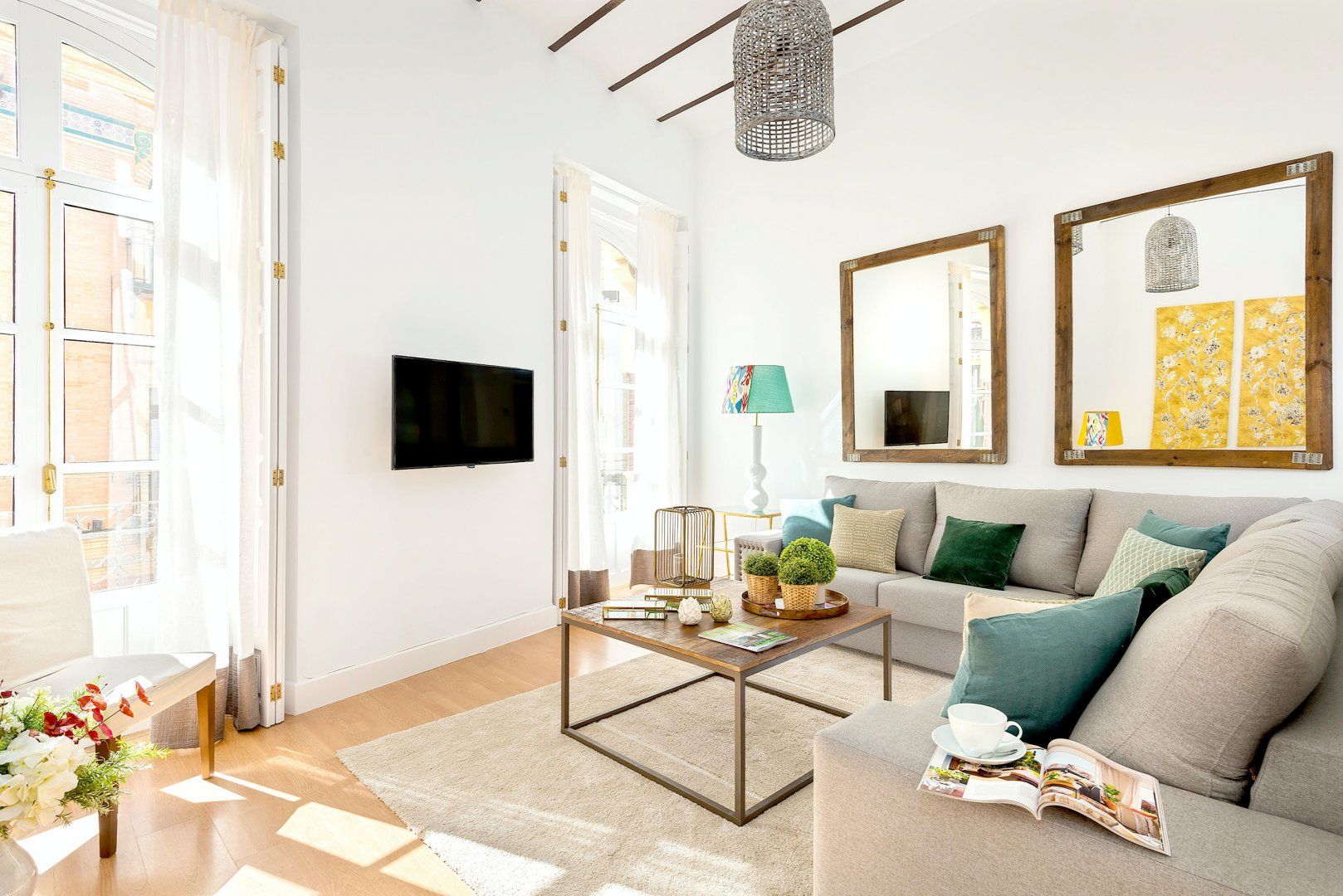 You'll fall in love with every room and every detail, from the small cactuses to the exposed wooden beams. You'll probably spend most of your time in the living room – a radiant space flooded with natural light and plenty of space.