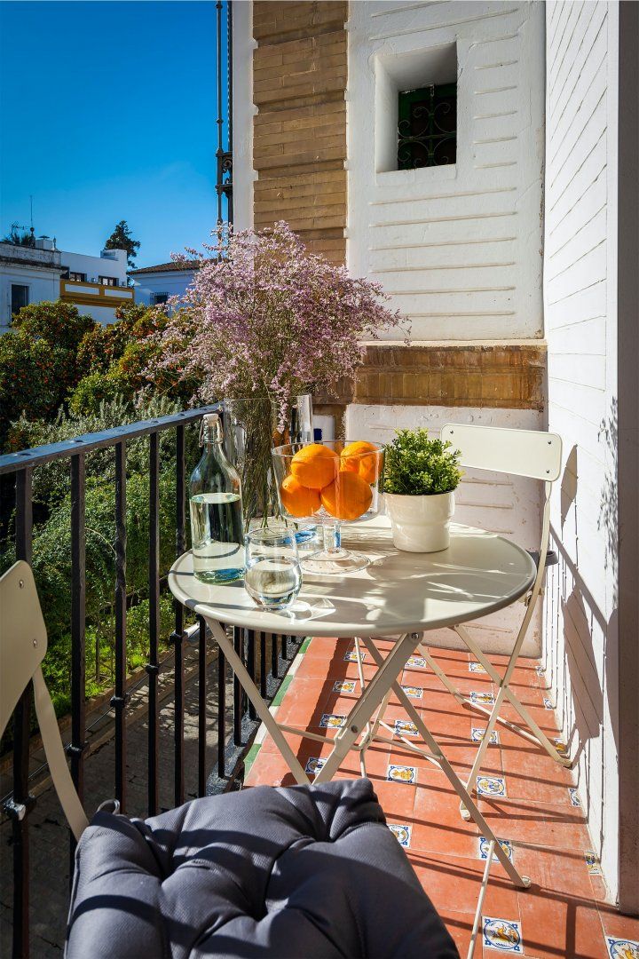 Seville has a distinct style, it's a lovely and colourful blend of classic and modern, which runs through this home beautifully. Exposed brick, wooden beams, and classic furniture go harmoniously with contemporary artwork and vibrant interiors. It's the kind of place that just looks warm and feels welcoming, with its soft, sandy tones and the glorious natural light that floods through the patio doors, inviting you out to the balcony. There's so much to love in this apartment, but this suntrap could be our favourite bit of the whole place – you'll love spending lazy mornings sipping coffee around the bistro table, overlooking luscious gardens and Santa Cruz Square.