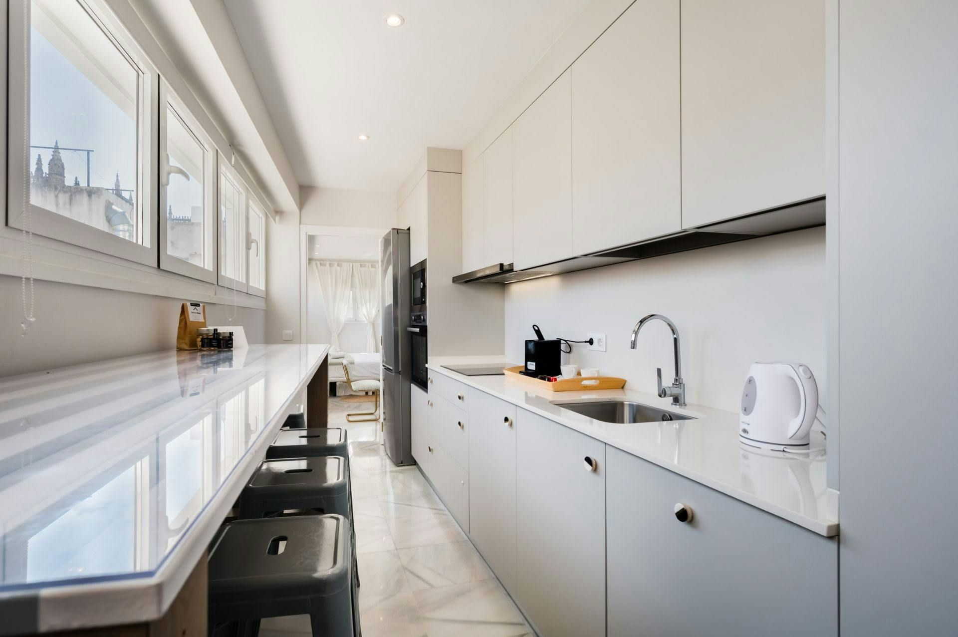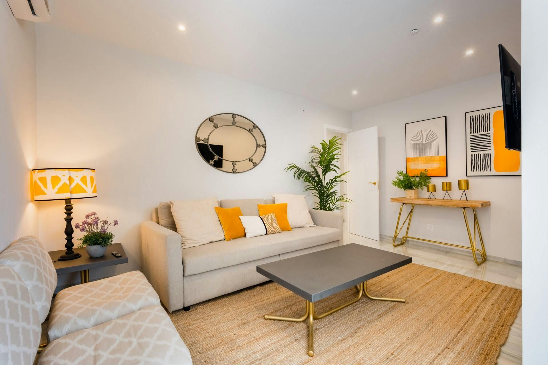 We don’t know what we love more – the pops of sunny yellow that brighten this stylish Seville apartment, or the views of the Giralda framed perfectly through the kitchen windows. Set right in the heart of the city, you’ll be just moments from the Cathedral, Plaza Nueva, and countless tapas bars. Inside, the home feels modern and is designed with a comfy living space and compact kitchen. A sofa bed allows space for an extra guest, though it’s best suited to four for maximum comfort. With its prime location and charming decor, it’s an ideal base for soaking up Seville’s spirit.