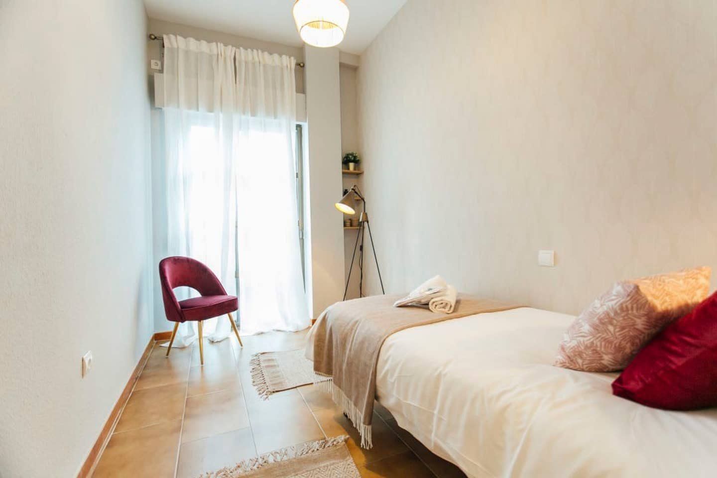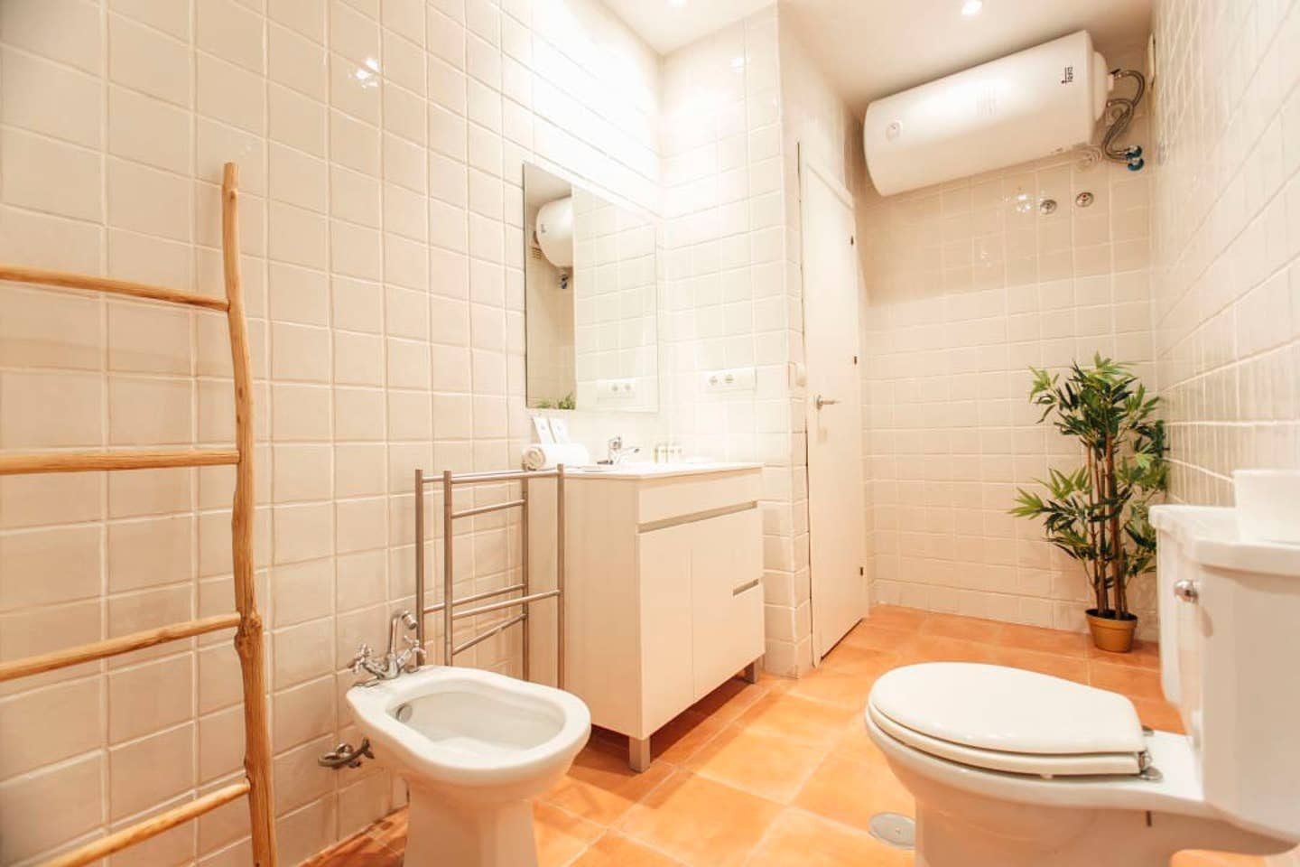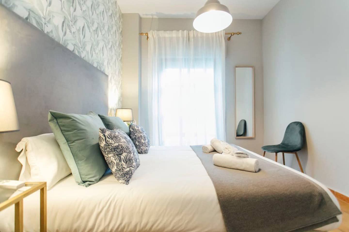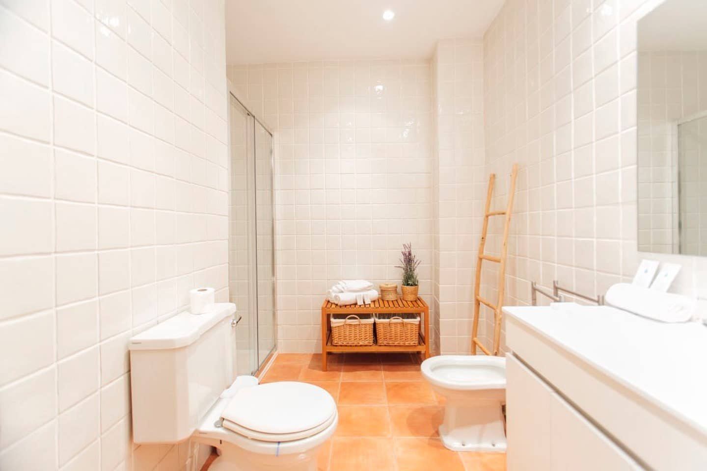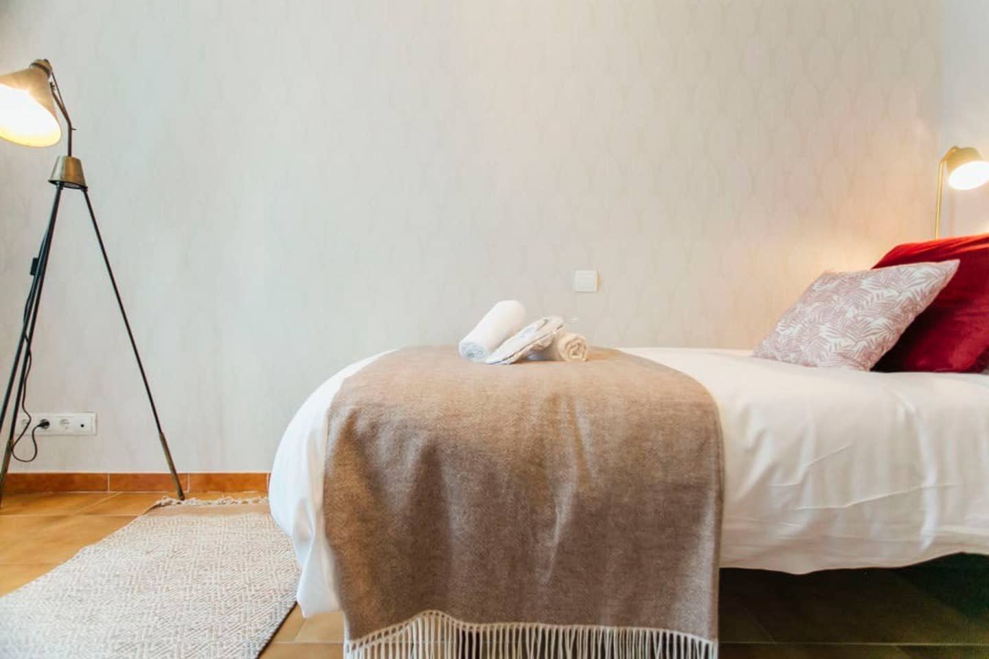 Back inside, you'll find a bright and modern living space combining wood floors, contemporary furnishings and minimalist artwork to create a stylish home. The open-plan layout invites you to socialise with your group, whether that's over a glass of Rioja on the comfy sofa or at the dining table for a Spanish feast. Through to the master bedroom, where you'll notice the tiled flooring, bold wallpaper prints and sumptuous bedding that ensures a restful night's sleep, ready for another day of Seville sightseeing.