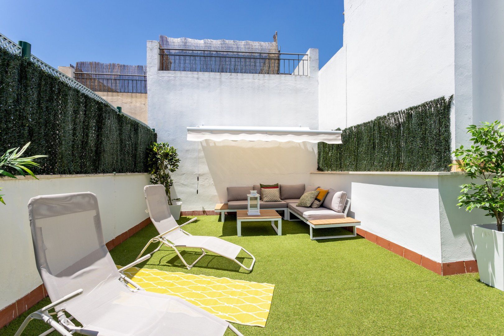 Back at this home, bask in the Andalusian sun on the private roof terrace – we can imagine sipping a glass of tinto de Verano as the sun goes down here. Inside, natural hues and materials, including wooden floors and driftwood lamps, contrast with the vibrant red of the kitchen. Rustle up a local staple, espinacas con garbanzos (spinach with chickpeas), if you don’t fancy eating out at one of the many restaurants and tapas bars nearby.
