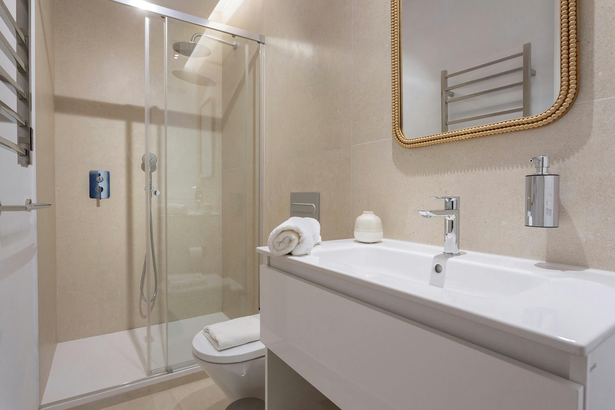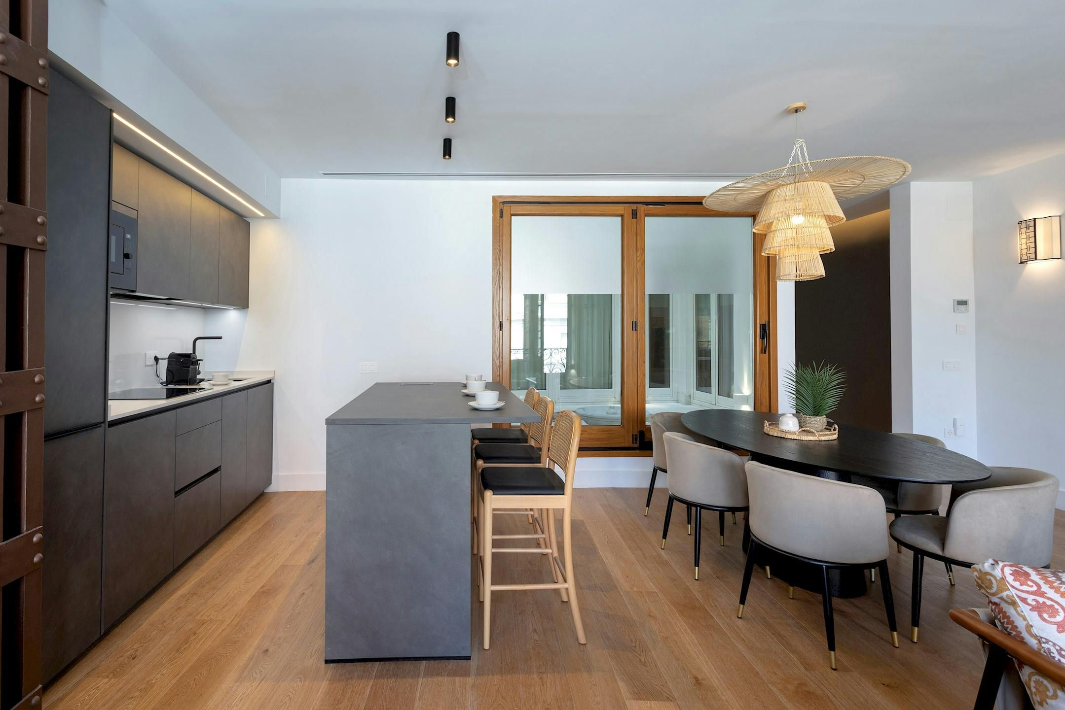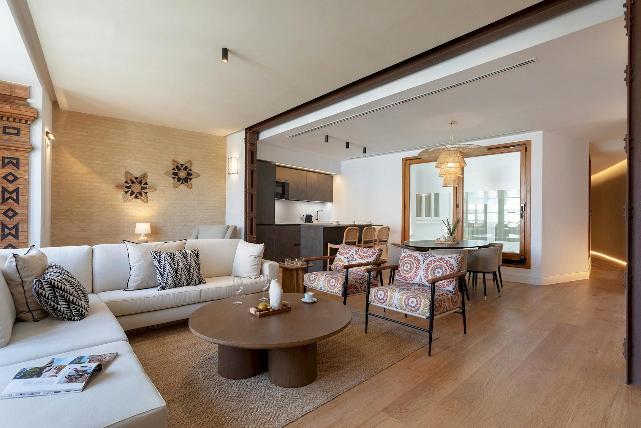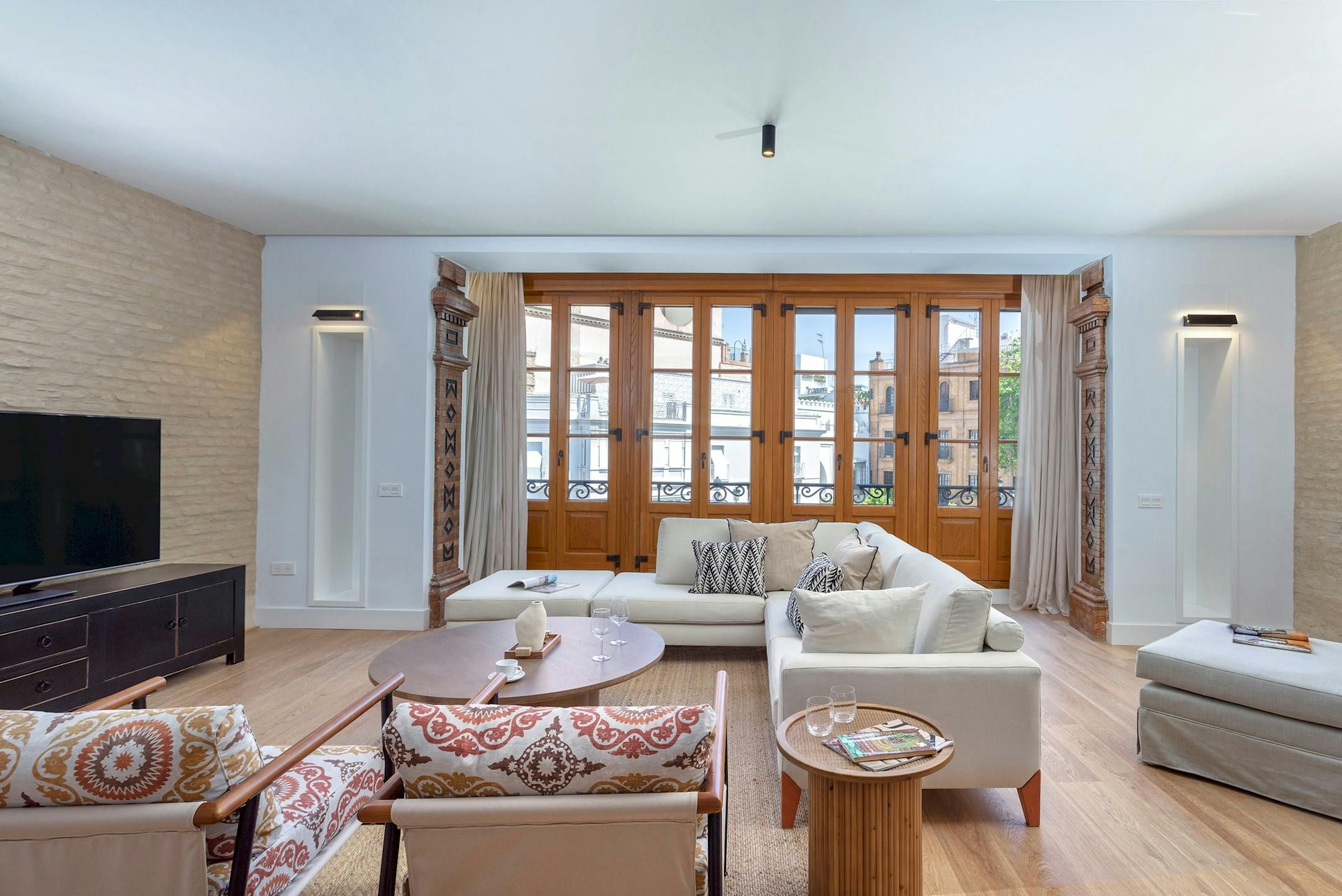 With fantastic views of the Alcázar, the Archive of the Indies, and Seville Cathedral, this apartment couldn’t have a much better location. But more about the address shortly. It’s not just the vistas that are impressive here – the large open-plan living space is well designed. This room also comfortably sleeps guests five and six on a sofa bed. There’s a great interior patio with a soothing fountain, just off the kitchen area, too. And when you want to explore, as we mentioned, you’re right next to the city’s main monuments. There are also many other attractions a short walk away, along with a dazzling array of shops, cafes and restaurants.