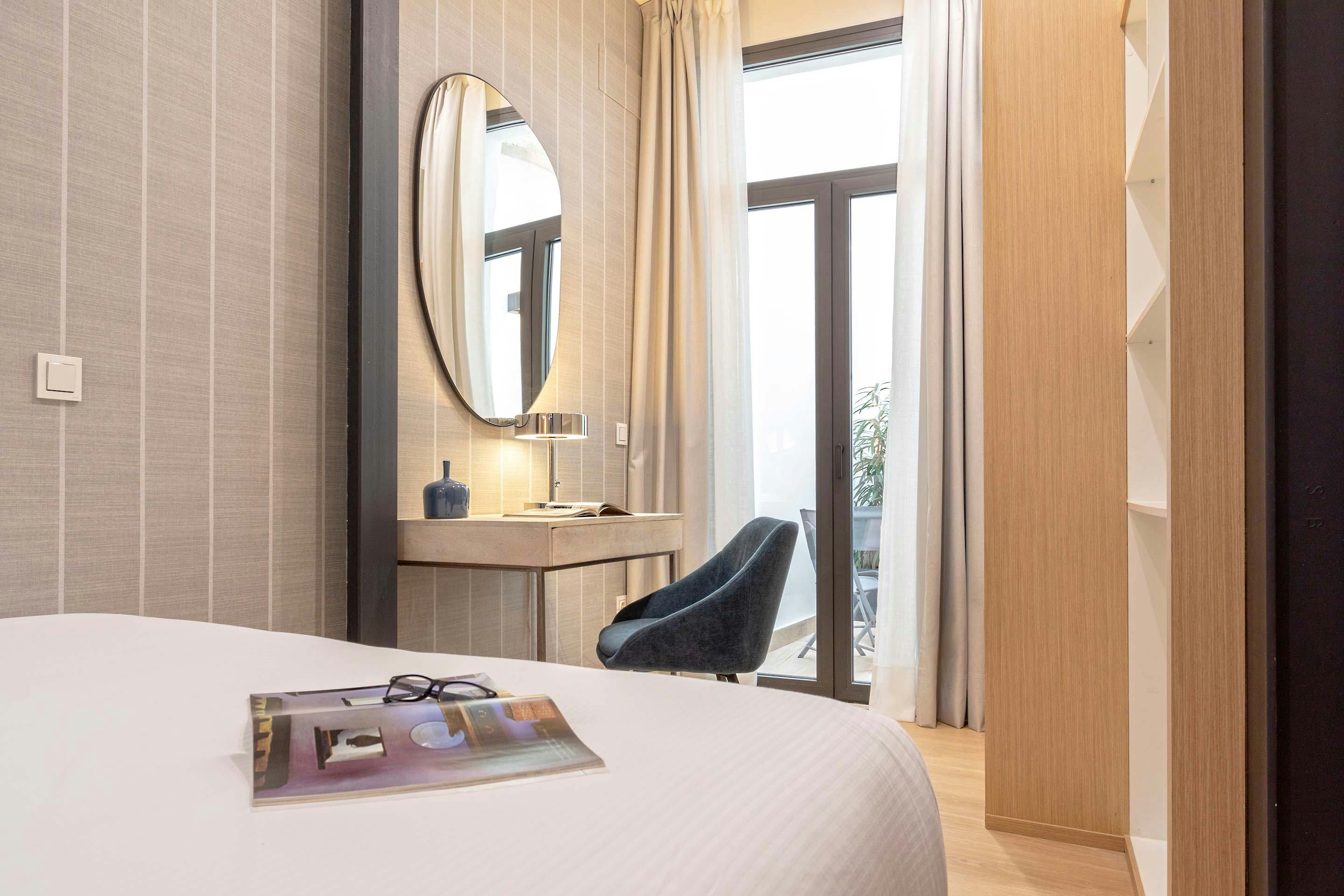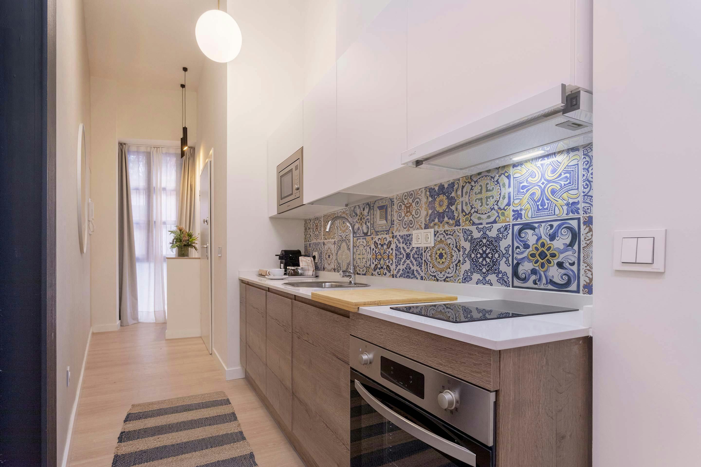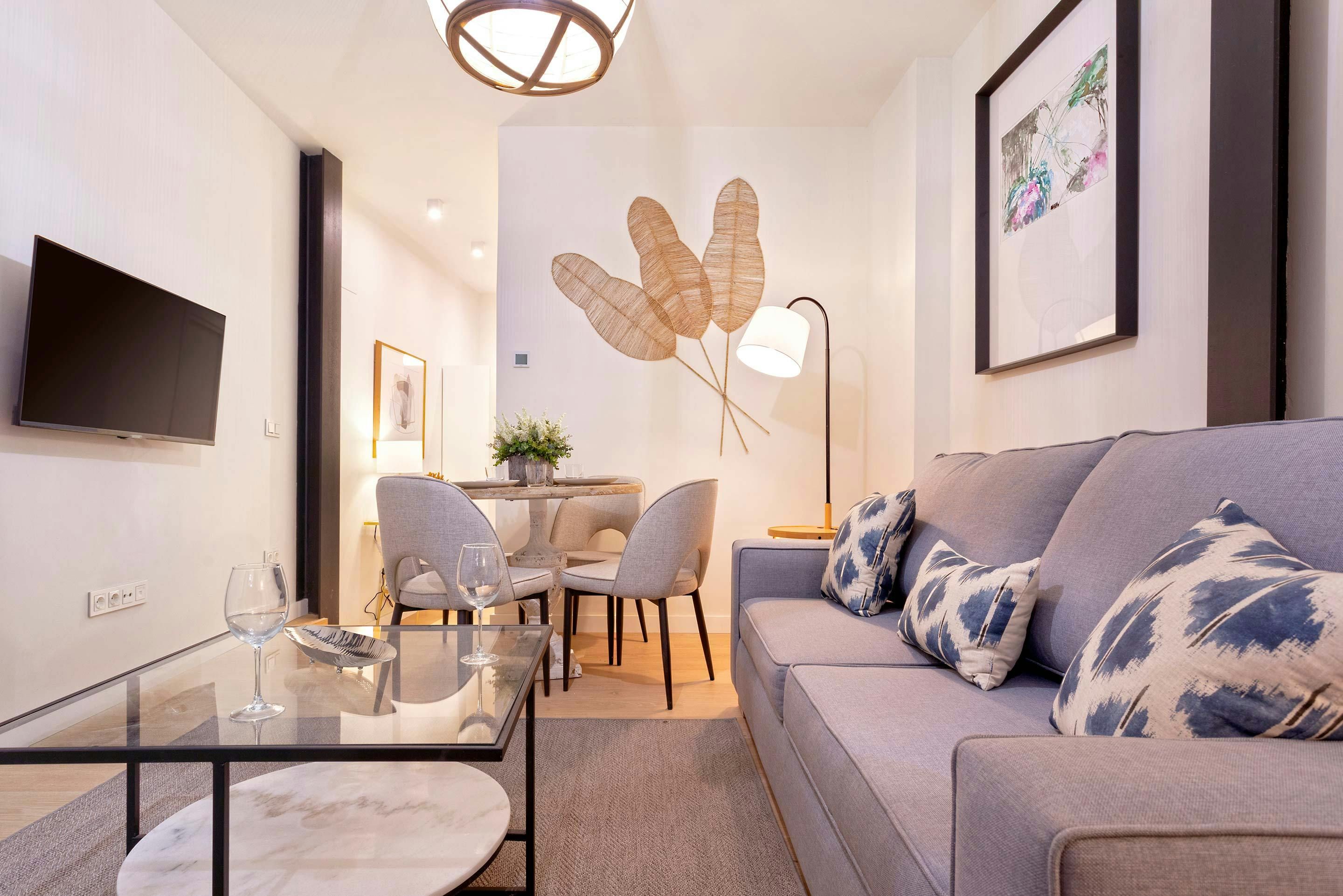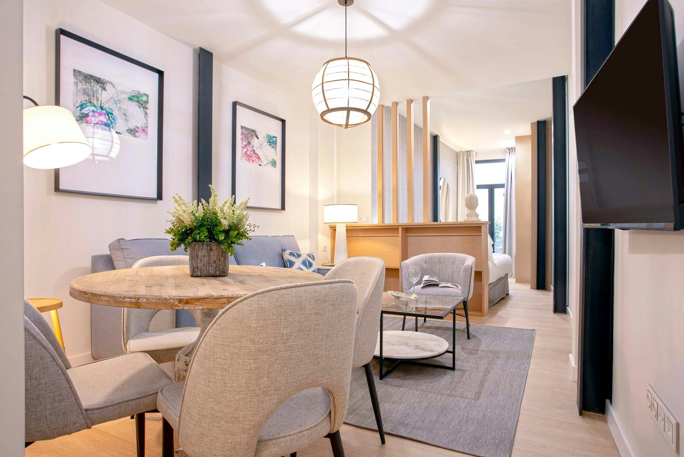 Located on Alfonso XII Street near Plaza del Museo, this stylish suite puts Seville’s best sights within easy walking distance. Inside, you’ll find a kitchen and multifunctional living area that blend elegance and practicality, creating a bright and comfortable space for everyday living. The bedroom offers a peaceful retreat, with access to an interior patio, a quiet spot to relax and enjoy the fresh air. With shops, tapas bars, and landmarks all around, it’s a well-placed home for an authentic Seville stay.