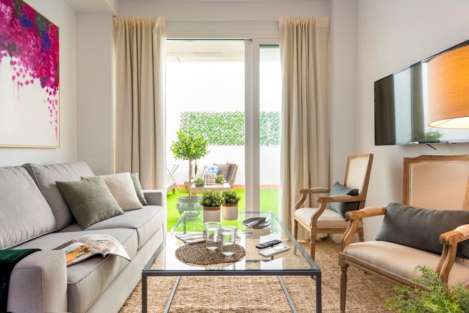 Situated in the heart of Seville's Old Town, on Baños Street, this stylish apartment is an ideal base for those looking to explore the city's traditional side, without sacrificing on modern comforts and high-end amenities. First and foremost, you'll have private use of a fully-furnished courtyard terrace, with direct access off the main bedroom and living room. With a comfortable lounge area and an outdoor dining table, it's the perfect space for evening cocktails and a few tasty tapas dishes to whet your appetite.