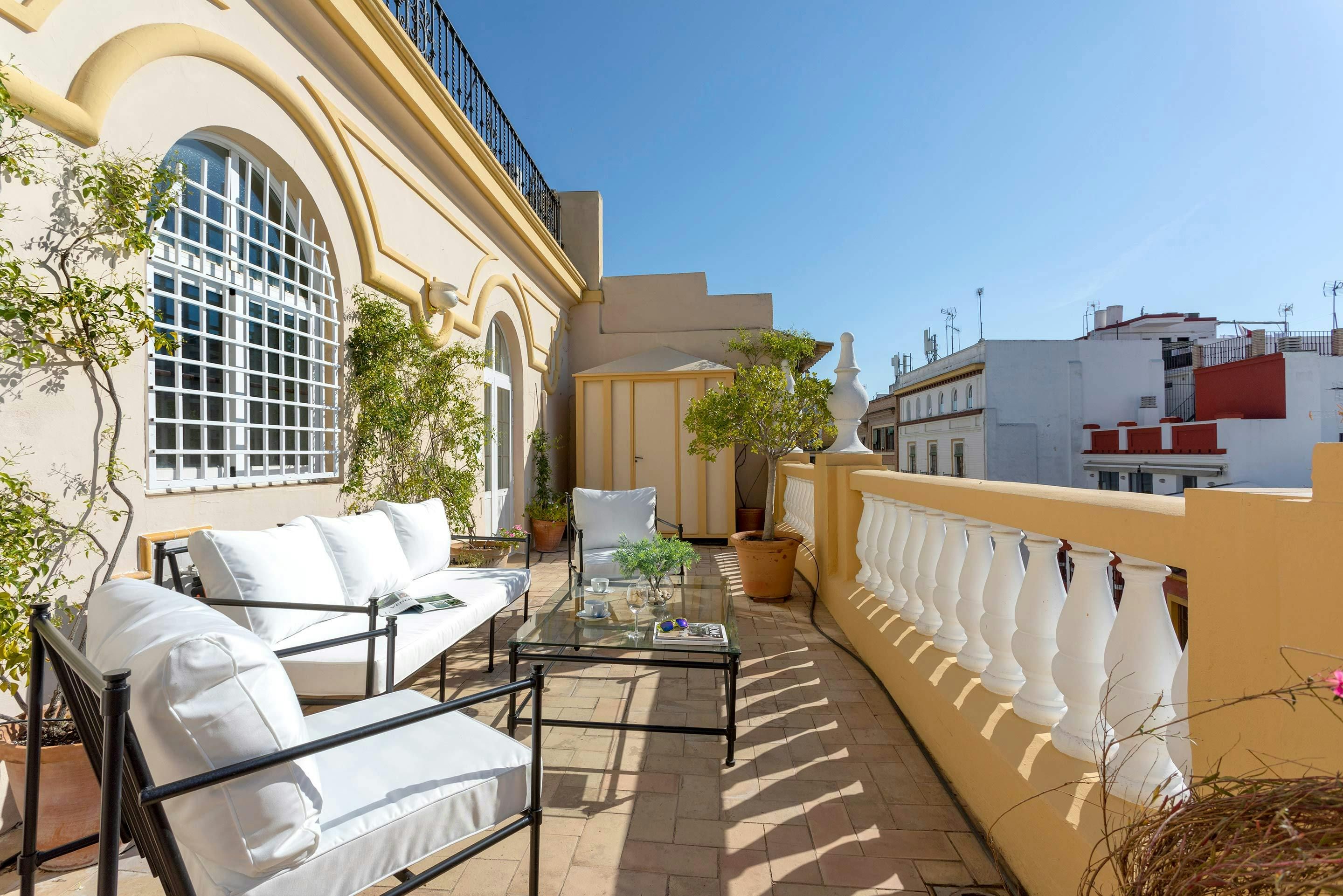 This stunning penthouse in the heart of Seville offers breathtaking views of the Cathedral and the Giralda from its wraparound terrace. Elegant and contemporary, it’s designed for comfort and unforgettable moments, whether dining outdoors, relaxing in the lounge area, or taking in the city skyline. Inside, bright open spaces and refined details create a calm, sophisticated atmosphere. With Seville’s most iconic landmarks, shops, and restaurants right on your doorstep, this home promises an exceptional stay in the city’s historic centre.