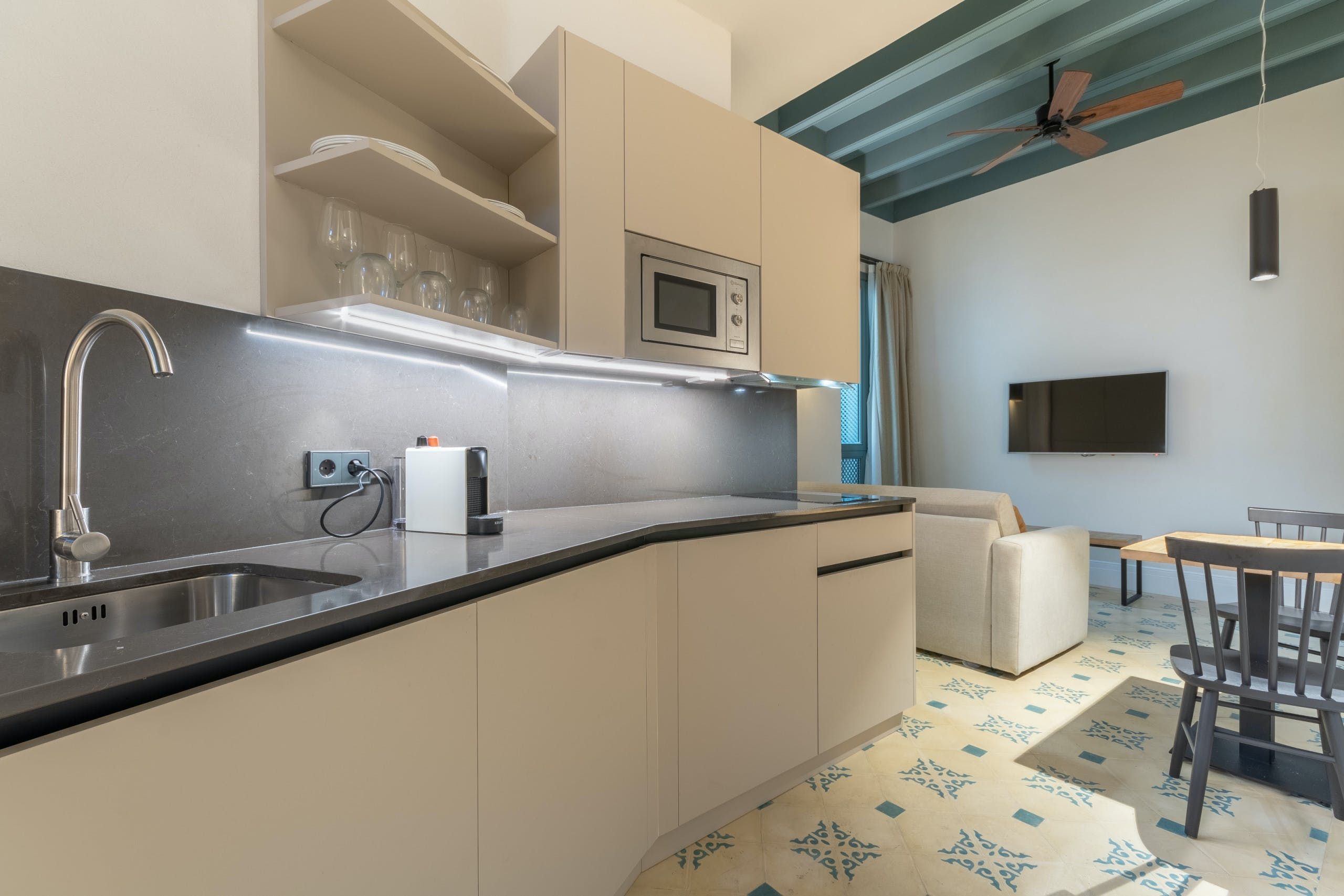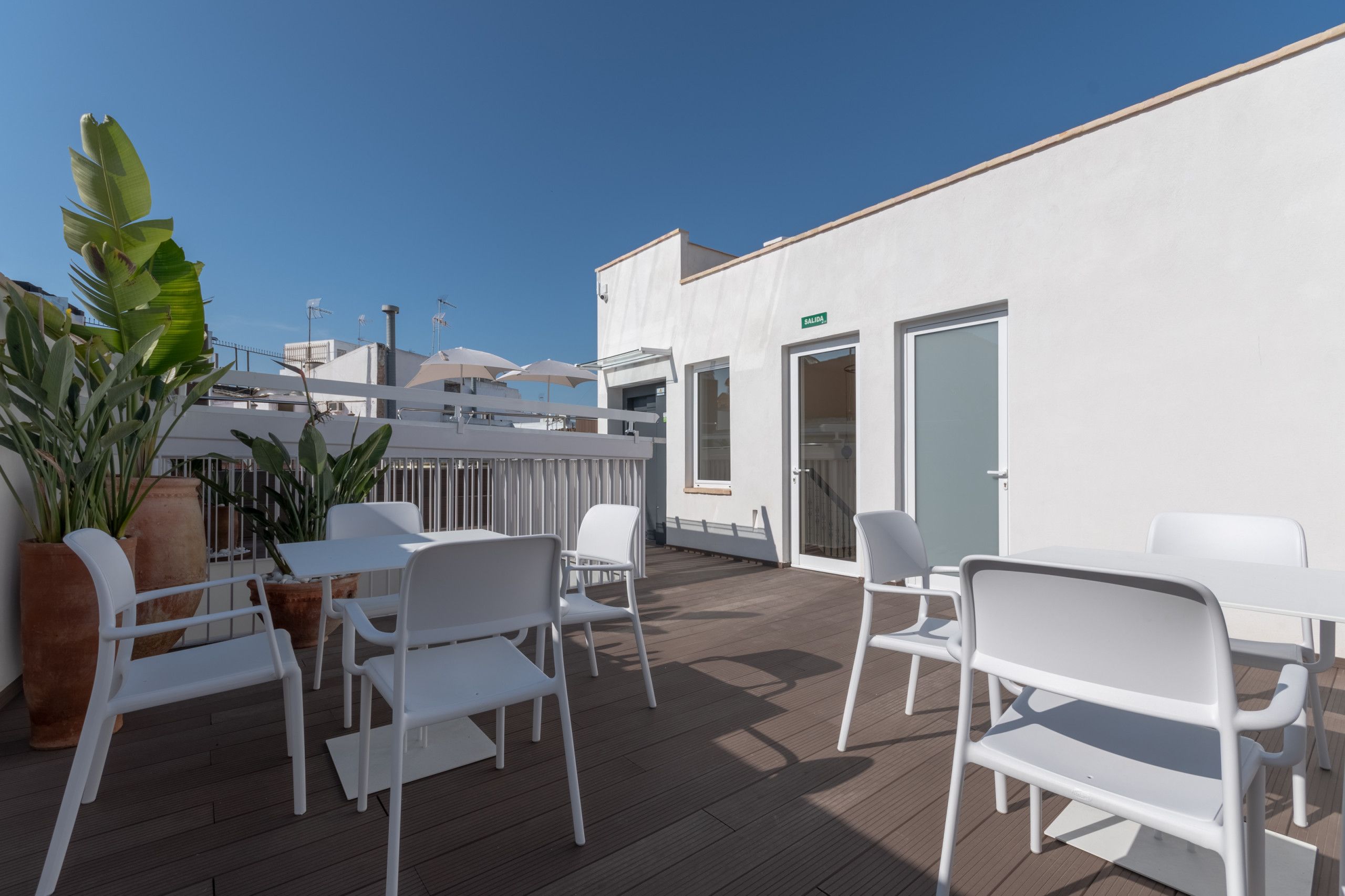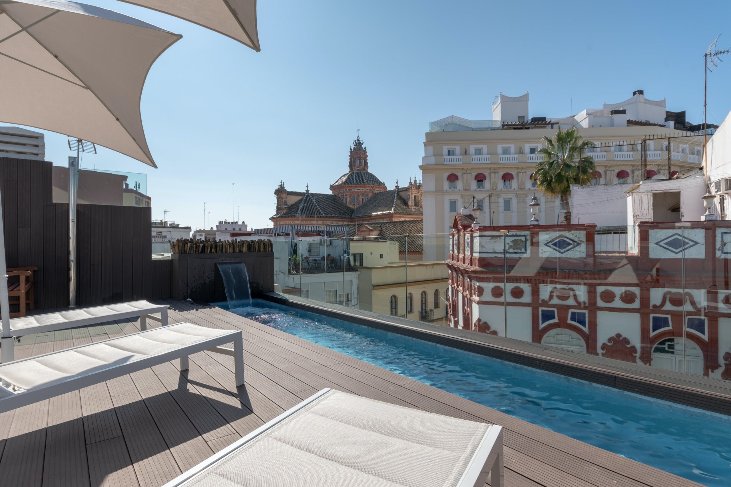 Each morning, you'll wake up in a modern bedroom and open your laptop at the quiet desk to lighten your workload. Maybe you'll want to make a light breakfast in this kitchen, then hop under the rain shower to start the day. After some sightseeing in the city, you can sunbathe by the communal plunge pool before you take an afternoon siesta in your apartment. Later, why don't you return to the rooftop terrace and socialise with your neighbours? Sip sangria here while you all watch a sunset over the stunning architecture.