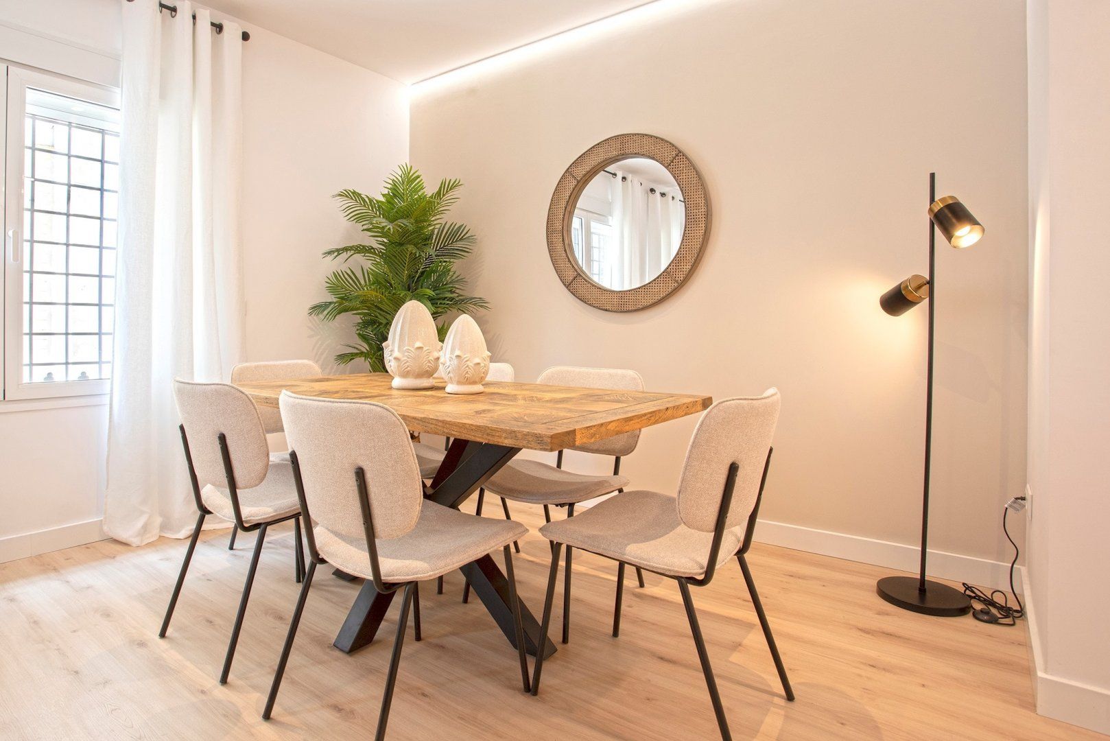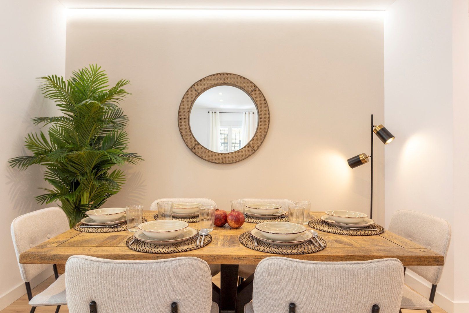 Awash with comforting, neutral tones, with apartment is a wonderful choice for a getaway in Seville. Despite being located in the historic neighbourhood of Santa Cruz, this home is beautifully contemporary with chic boho touches and mid-century furnishings. It's been thoughtfully decorated to help anyone feel at ease here, tucked away in your cosy haven while being just steps away from some of the city's most important sights.