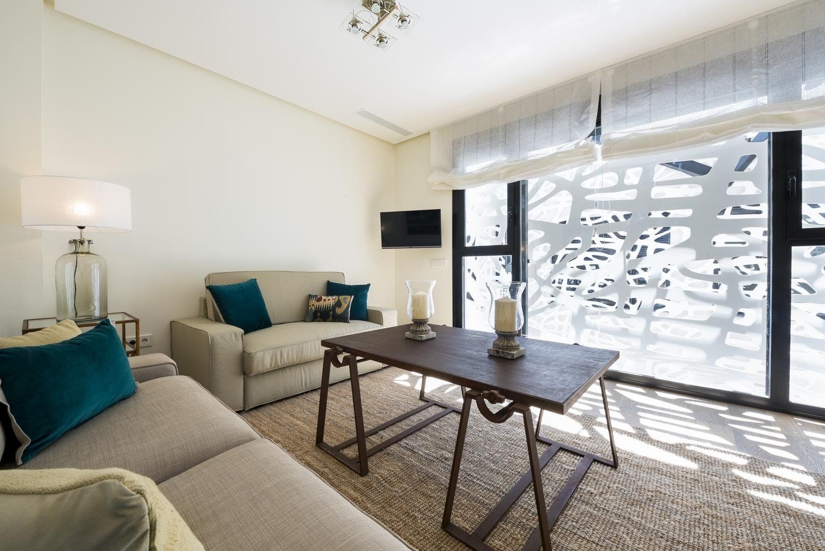 *Guest five would be on a sofa bed in the living room – if you're looking for a home with ample space for socialising, we'd recommend this home for four guests only. The fifth guest will need to use one of the en-suite bathrooms. *This home is a duplex, so there are stairs to climb. *If you're travelling with little ones, your host can provide a cot and high chair for free. You'll need to request them in advance. *Given the home's central spot, expect to hear some street noise throughout your stay. *Seville airport is 12 kilometres away.