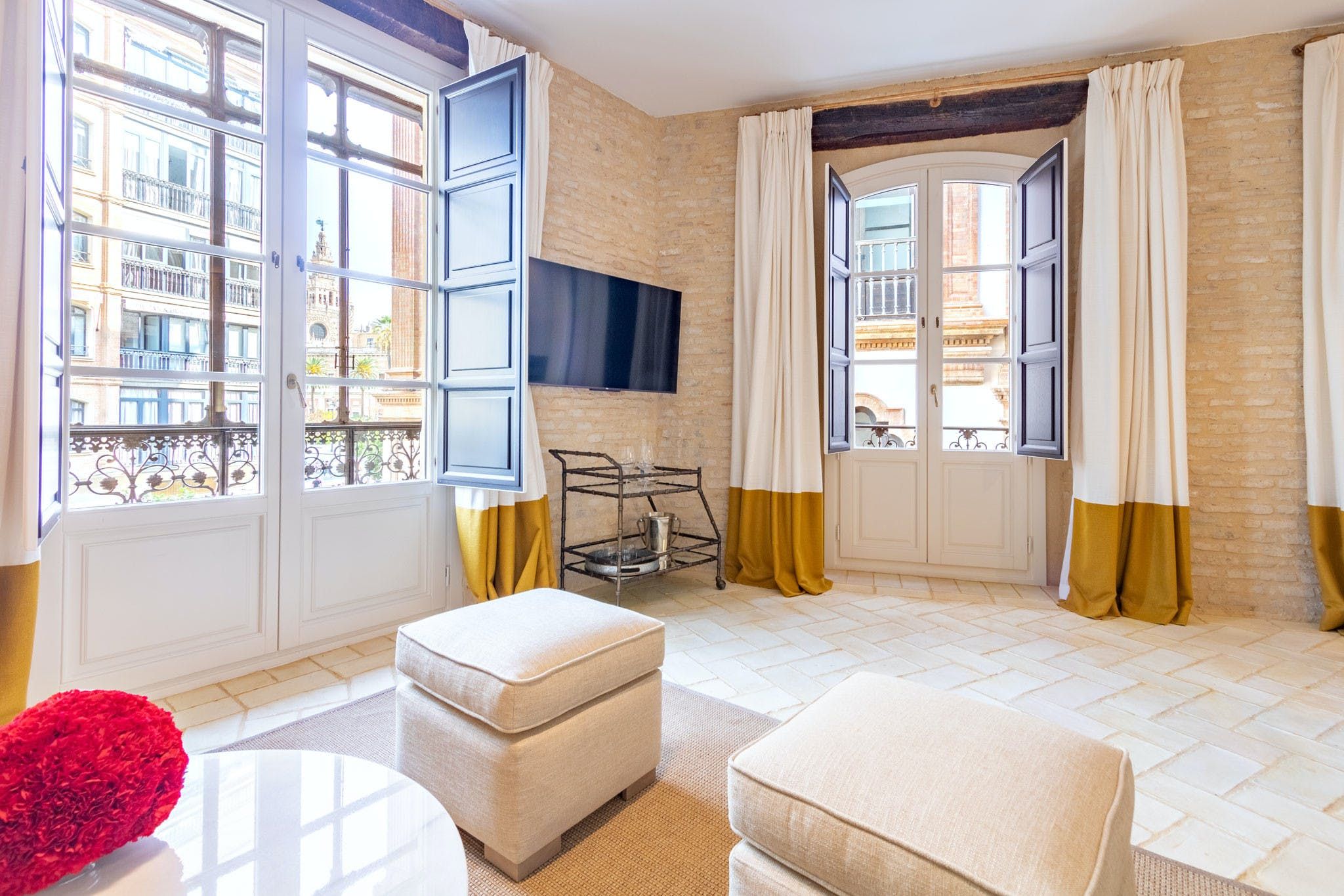 Located in what was once the Royal Mint of Seville, this charming apartment puts the history centre of the city at your fingertips. We love how much natural light enters the home during the day, and throughout you'll find little touches that speak to the building's history, like its stone walls. With two bathrooms, morning routines will be a breeze – just as well, as there is so much to see nearby. The city centre is less than 1km away, and you'll find plenty of historic buildings, including the impressive Seville Cathedral within two hundred yards.
