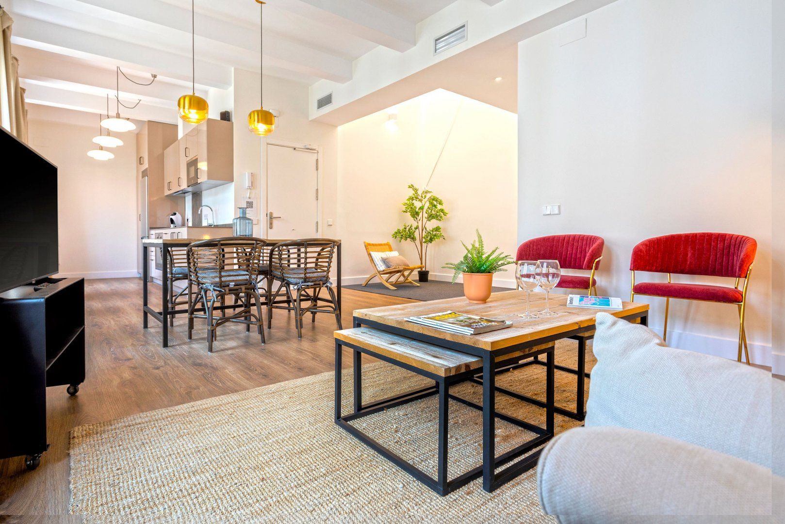 Home truths: *At full occupancy, one person will be sleeping on a sofa bed in the living area. *There's not enough dining space here for all guests at capacity. That said, you've got plenty of the area's best restaurants nearby. *Given the home's central spot, expect to hear some street noise throughout your stay. *If you're travelling with little ones, your host can provide a high chair for free. You'll need to request it in advance. *We recommend skipping the car here and exploring Seville on foot or by public transport instead.