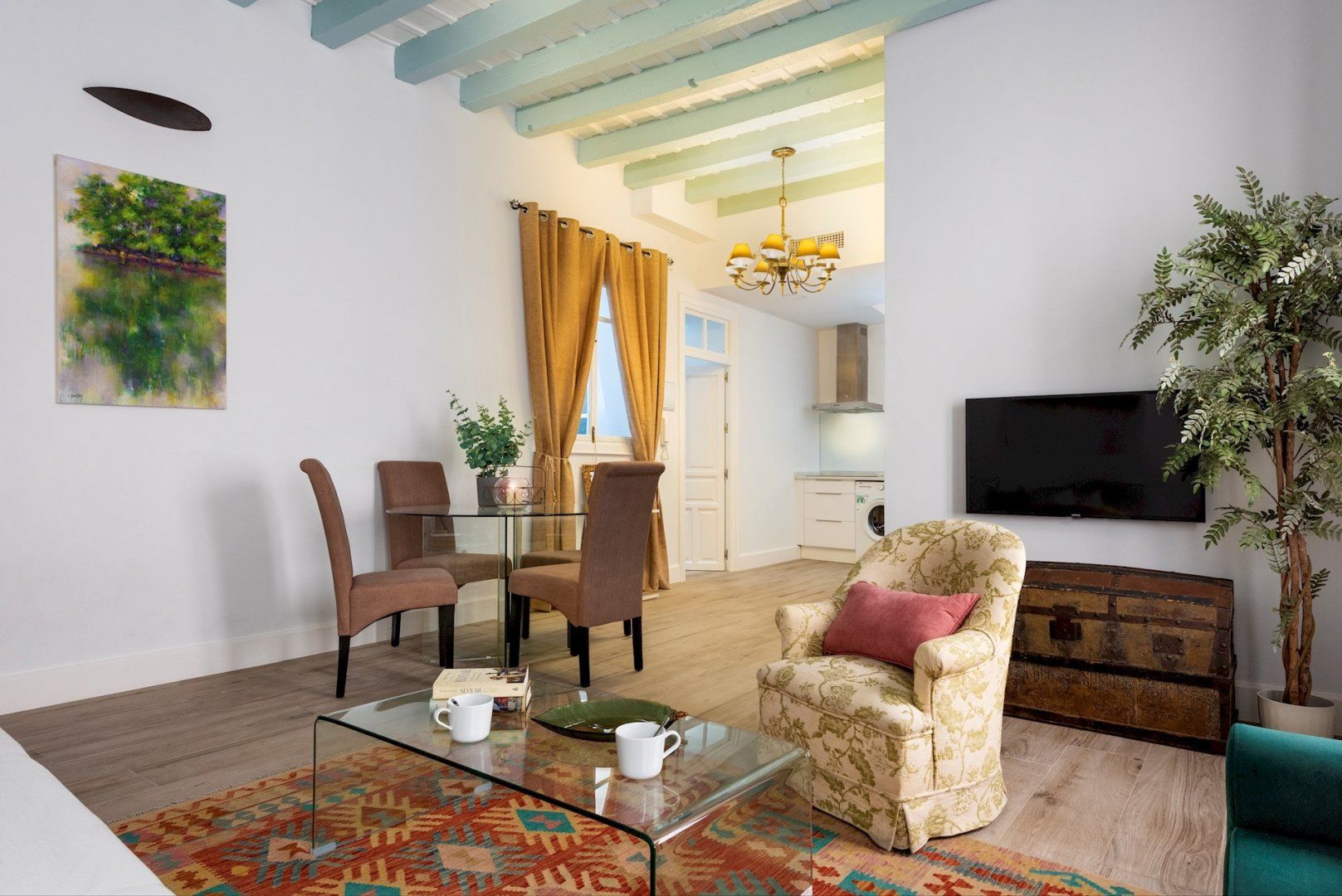All of that sightseeing is bound to work up an appetite. You have two supermarkets close by if you want to try your hand at local dishes in the well-equipped kitchen. You'll love tucking into delicious homecooked meals around the dining table, beneath the home's original wood-beamed ceiling and the warm-toned chandelier. If you don't feel like cooking, the area is teeming with traditional tapas spots and famous, upmarket restaurants to try out.