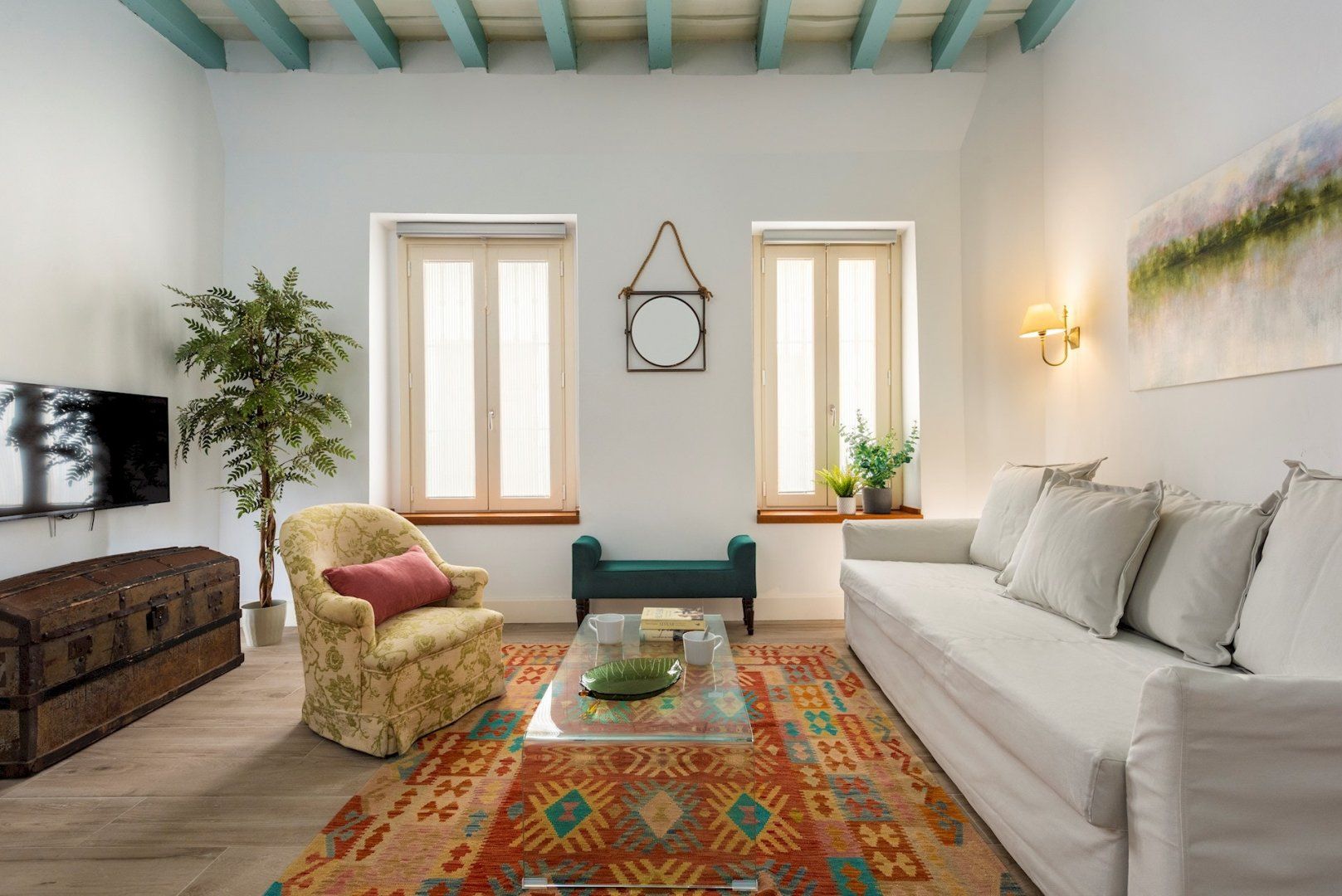 We love how bright and open this apartment is, with flashes of vibrant colours bringing the home alive. It's cosy and warm, with the blend of old and new furniture making this the kind of home you want to spend time in. Although you are just steps away from the centre of El Arenal, Seville's Old Town, you can relax in the peace and quiet of your comforting apartment. You won't feel like you're just a few minutes' walking distance from some of the city's most notable sites, like the Catedral de Sevilla, the Alcázar, or the Giralda.