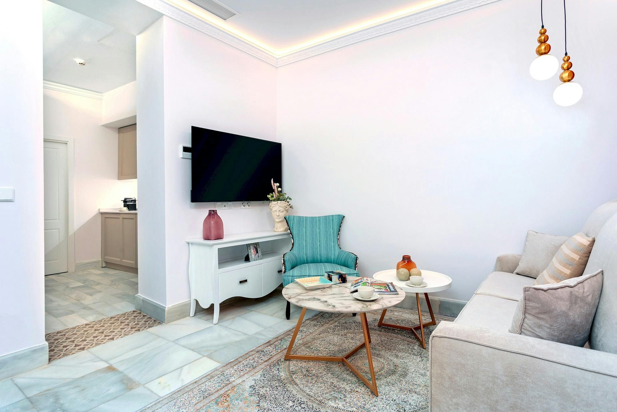 This bright apartment in the heart of Seville blends stylish design with a calm, welcoming feel. The living space opens onto a quiet patio, perfect for a peaceful start or end to your day. Guests can also enjoy access to a rooftop pool, gym, and sun terrace, ideal for soaking up the city sunshine. With shops, tapas bars, and Seville’s most famous landmarks just a short stroll away, it’s a well-placed home for discovering the charm and culture of this vibrant Andalusian city.
