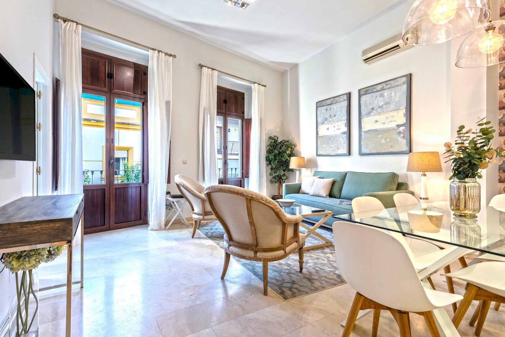 We adore the gorgeous views of Seville Cathedral and the Giralda tower from this home’s private terrace. It’s the perfect spot for a glass of tinto de Verano as the sun sets in this sultry city. Inside, you can take in the vistas of the neighbourhood from the balconies. We love the light and bright interiors here. Rustle up some cazón en adobo (spicy fried fish) in the modern kitchen if you don’t fancy eating out at one of the many tapas bars or restaurants in the locale.