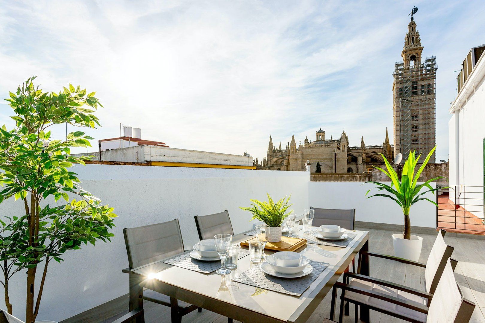 Seville's beautiful cathedral stands proud in the striking skyline, and you have the best view from the privacy of your own rooftop terrace. Whether you're lounging on the comfy cushions or sharing tapas on the dining table, the terrace is an idyllic spot throughout the day.