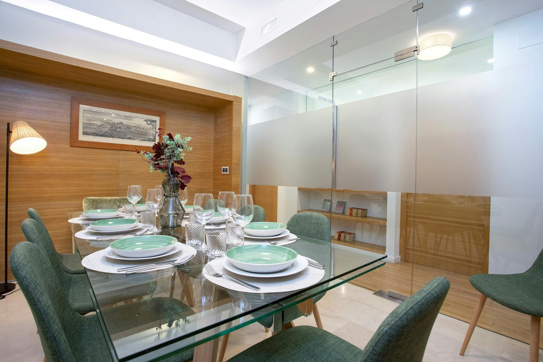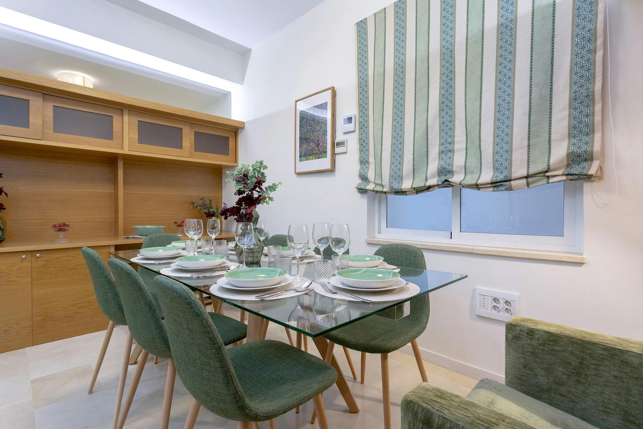 This apartment puts Seville's top attractions at your fingertips. You're within strolling distance of the historic centre, the Royal Alcázar, and Plaza de España, and surrounded by local tapas bars and boutique shops. The space itself is generously-sized with five bedrooms, a living room and separate dining area. The kitchen is on the smaller side if you're cooking for eight, but it has everything you need. Plus, there's a little balcony offering a peaceful spot to unwind after a day of exploring the city.