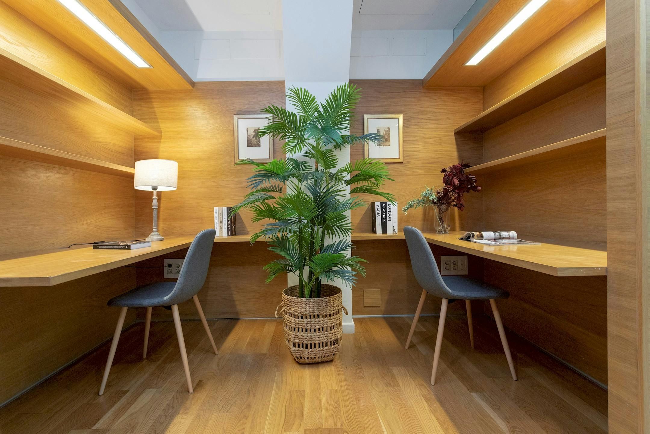 Home truths: *There's a built-in workspace here, featuring two desks.