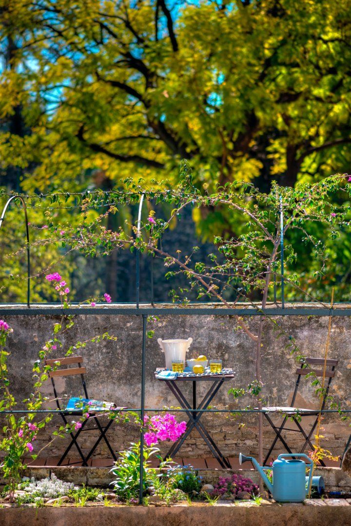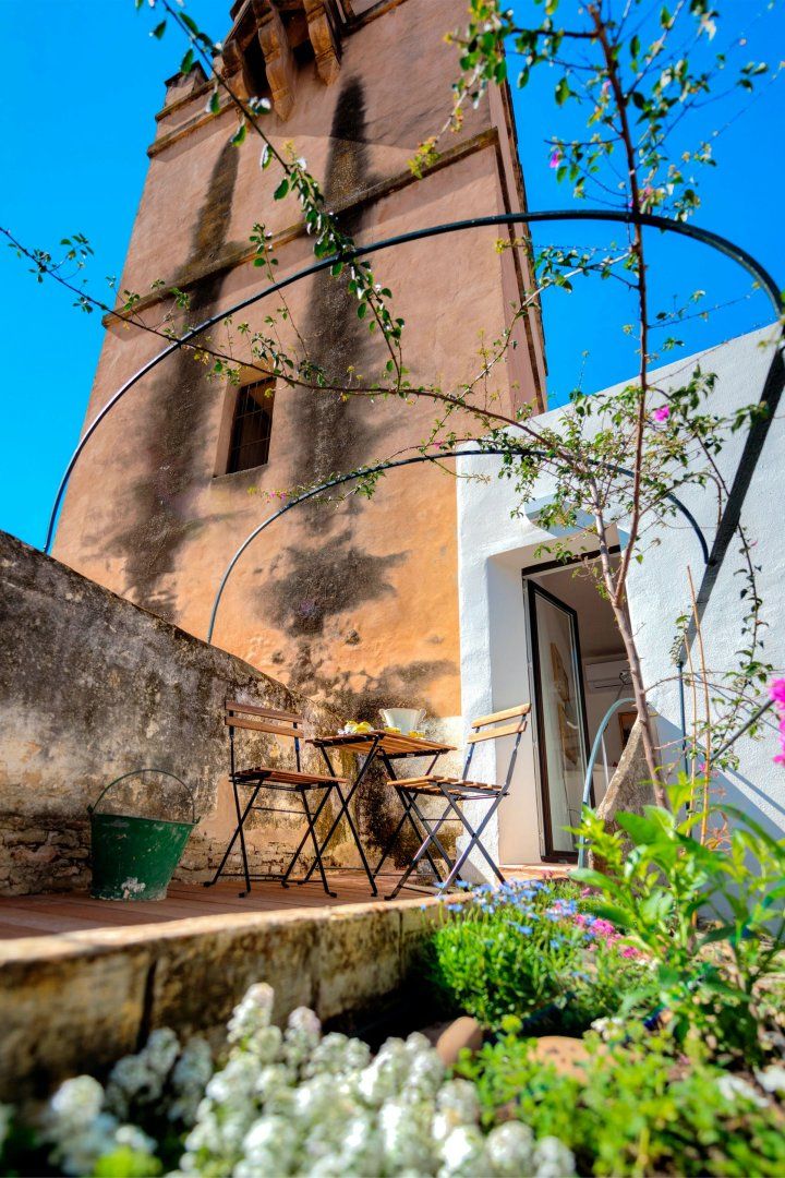 Stepping inside, the ground-floor bedrooms are styled with crisp white linens and set the tone for a truly relaxing stay, while the first-floor kitchen is fully equipped with everything you could need to settle in and feel at home. Follow the light upstairs and you’ll find the living room has been thoughtfully designed to fill your stay with luxurious comfort. From the cosy furnishings to the art and books, this is the perfect spot to relax and share quality time together. From here, the space opens up onto two terraces where you can enjoy gilded afternoons on a lounger and dusky-pink sunset drinks – all the while being serenaded by the abundant beauty of the Alcázar gardens.
