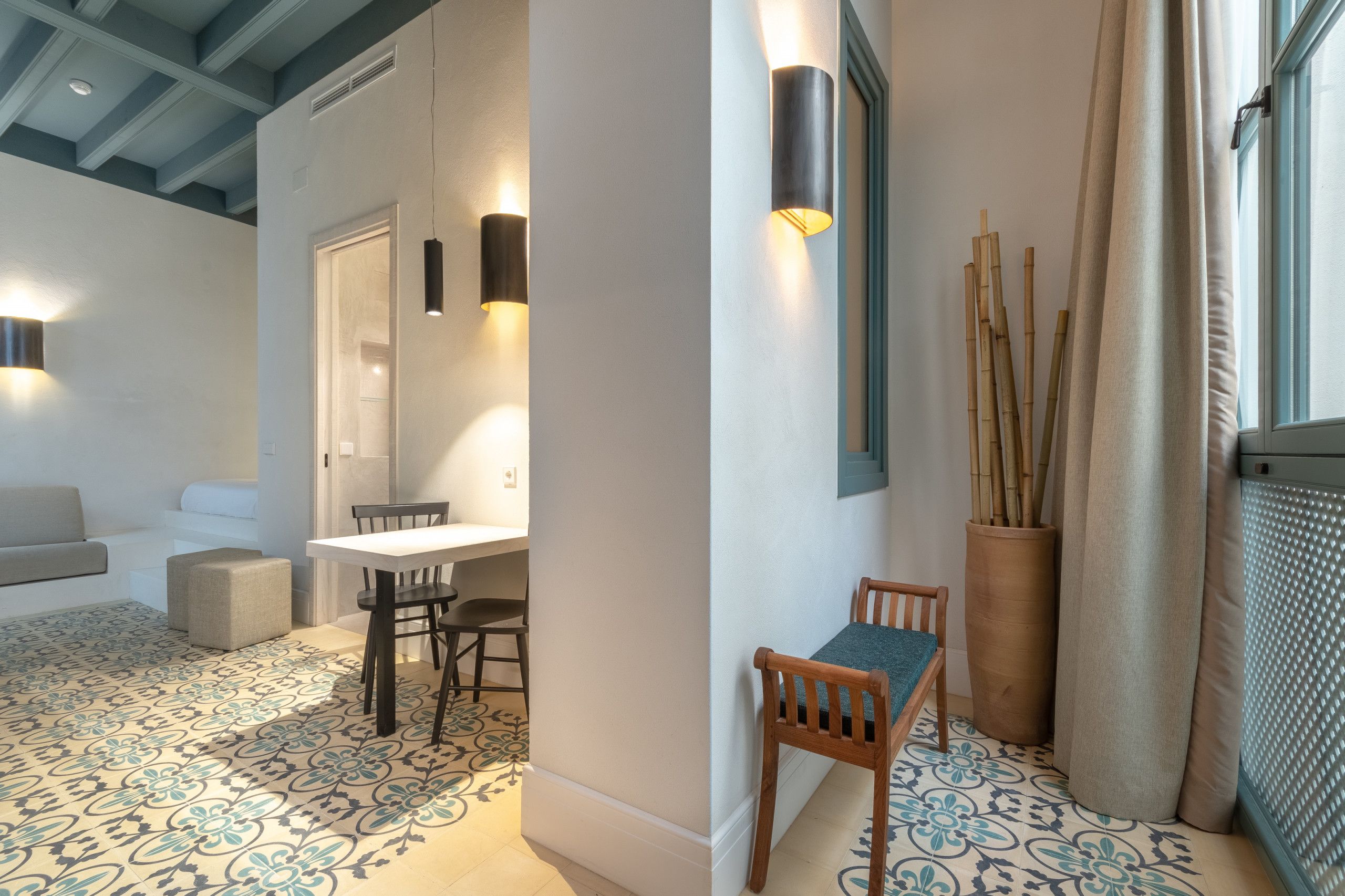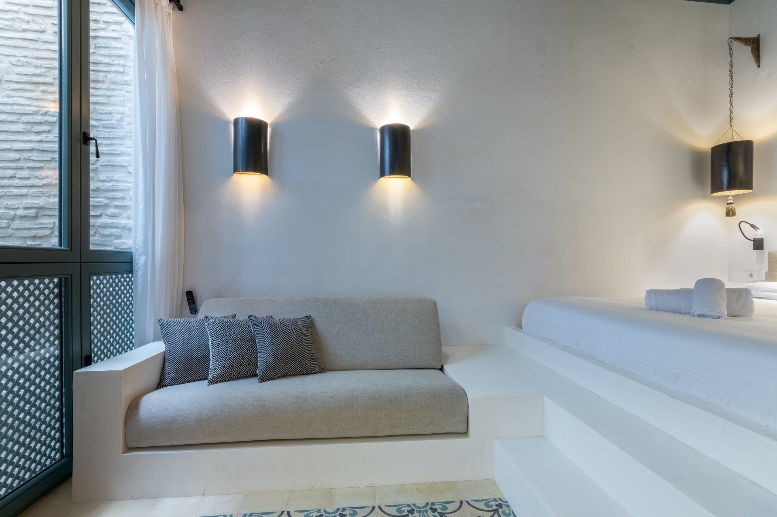 Elsewhere, a tranquil interior courtyard, equipped with a plunge pool and relaxing reading room, is a gorgeous space to escape Sevilla's searing summer heat. Alternatively, head up to the rooftop terrace, where you can bask beneath cloudless Andalusian skies in between dips in the pool and cooling showers beneath the waterfall. Finally, an outdoor patio is ideal for picturesque alfresco breakfasts.