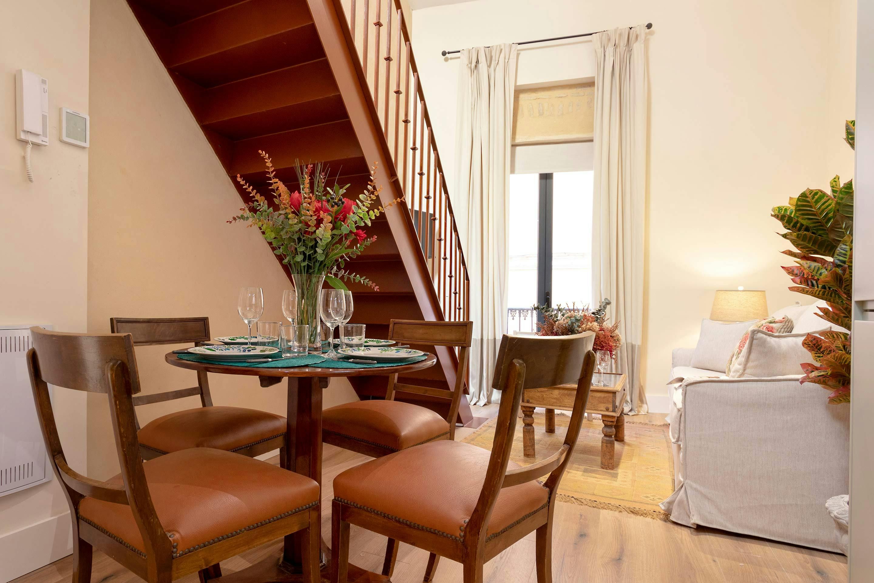 Just steps from Seville's impressive Cathedral, this compact apartment sets you in the heart of the city (which is only a problem if you don't like the sound of church bells). The highlight of this home is the private roof terrace – it's the perfect spot to soak up the sun with a sangria. Or, unwind in the cosy living room with the French doors open and soak up the lively street atmosphere. The kitchenette might come in handy for quick breakfasts, but with a location this good, you'll want to explore the tapas bars and other eateries that fill the surrounding streets.
