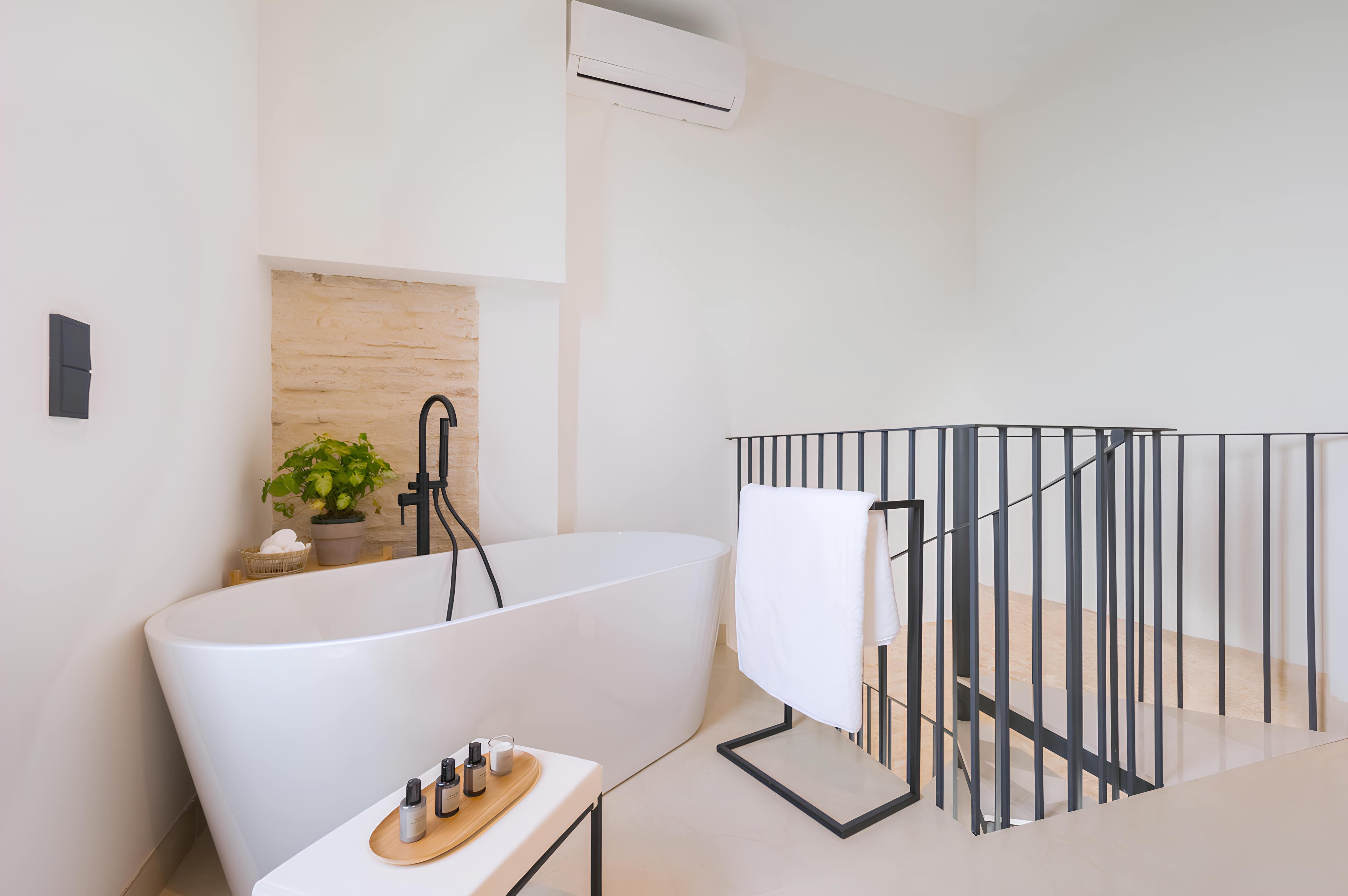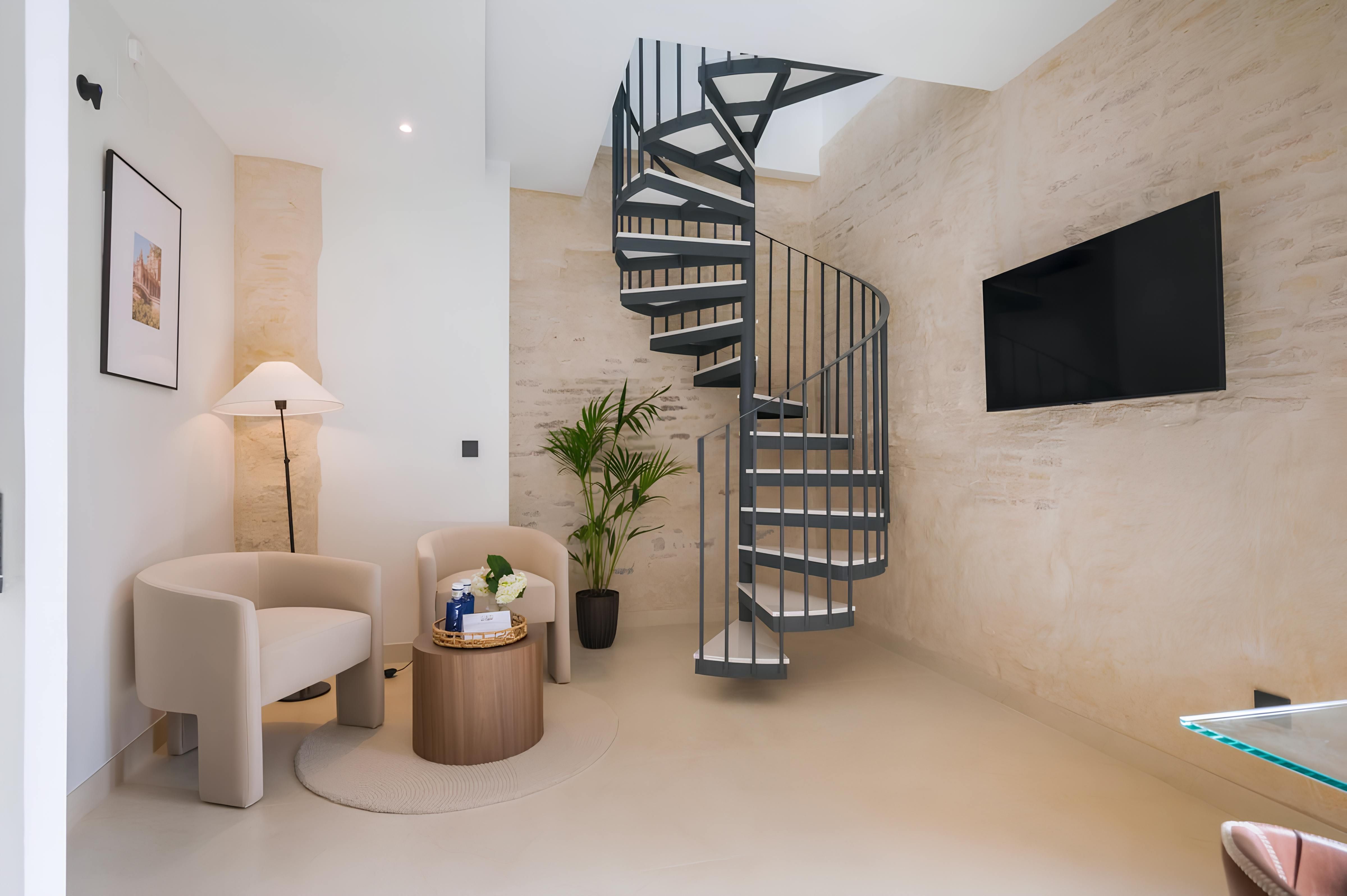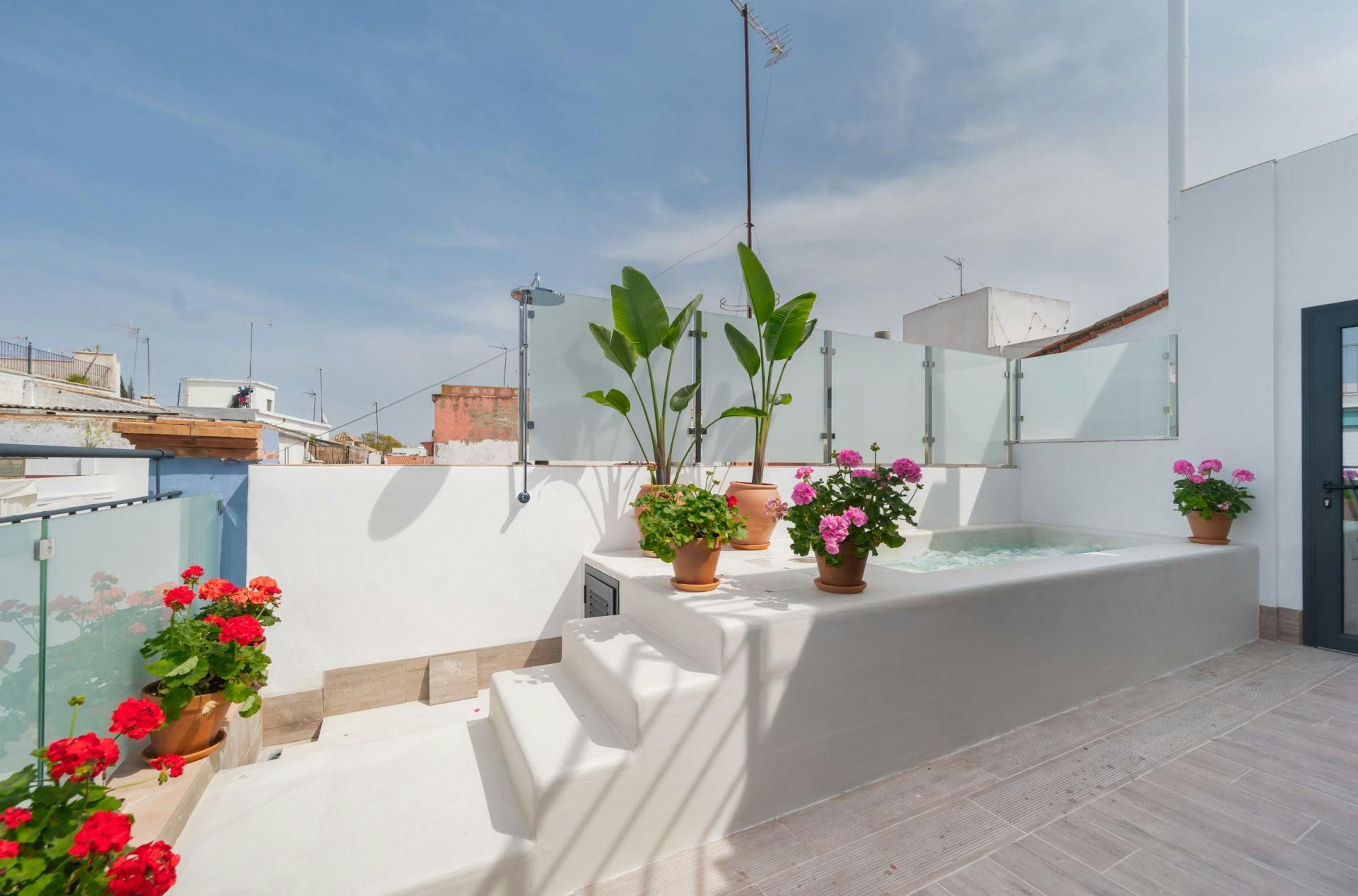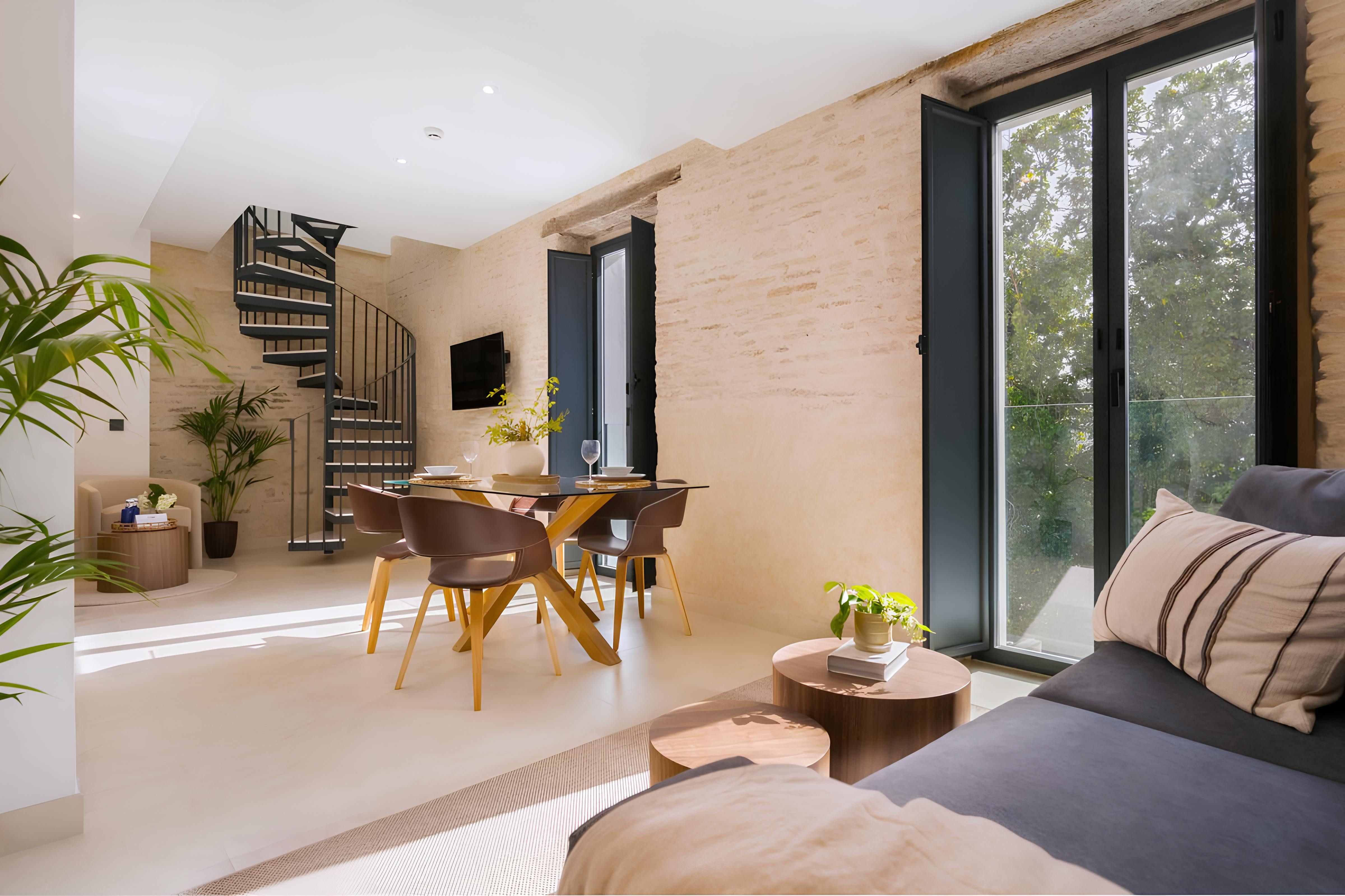 Fancy staying in the historic heart of Seville? This elegant duplex is hard to beat. Just moments from Casa de Pilatos, you’ll find tapas bars, boutiques, and iconic landmarks all within easy walking distance. Inside, it blends Andalusian charm with contemporary interiors – think high ceilings, neutral tones and a swirling staircase. For a touch of everyday luxury, one of the bedrooms even comes with a freestanding bathtub. Best of all? We love the small, shared plunge pool on the rooftop terrace, perfect for cooling off after a day exploring the city’s cobbled streets and sun-soaked squares.