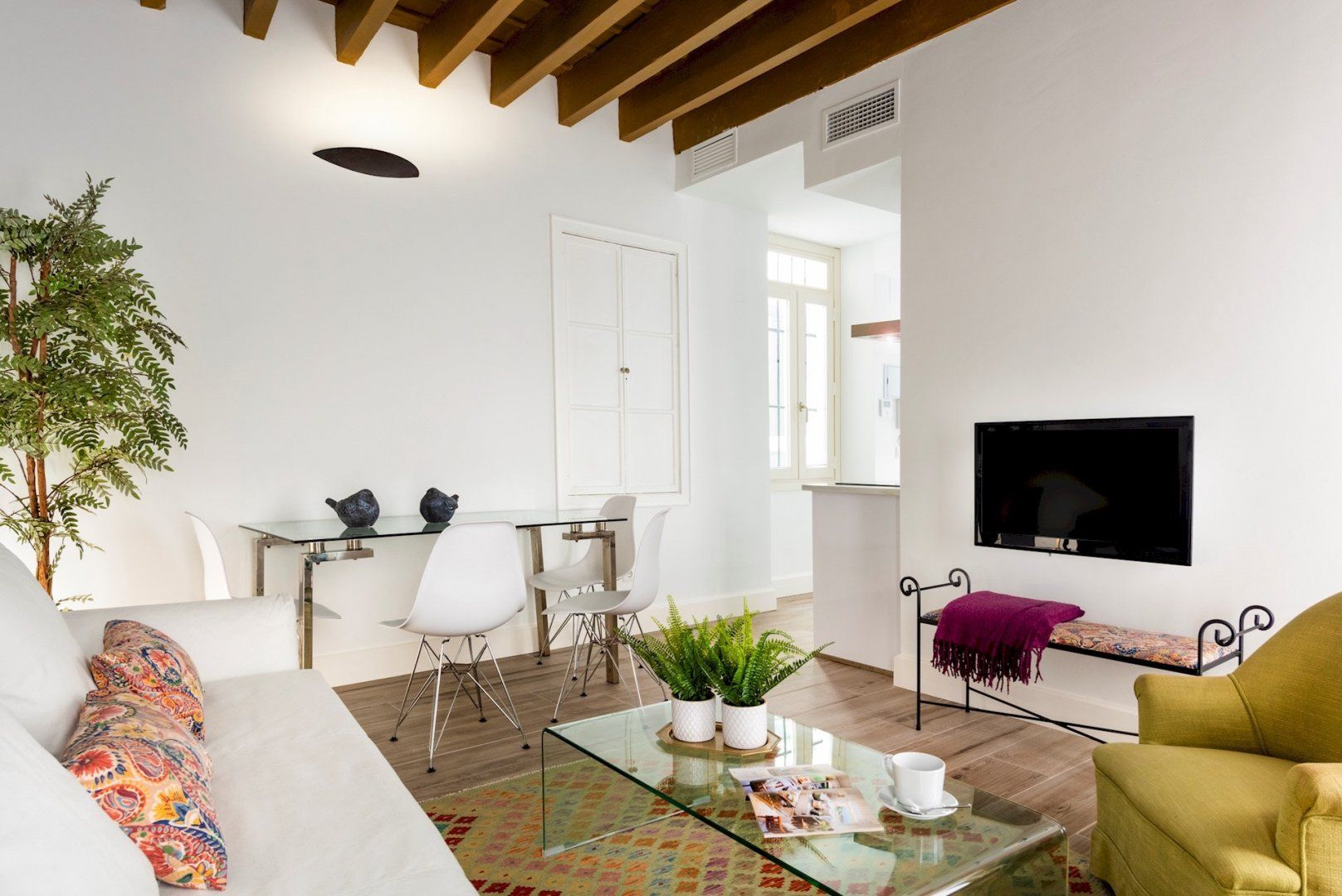 Located in the famous Arenal neighbourhood of Seville, the apartment resides on the first floor of a restored Sevillian house. On one of the quieter streets of this sought-after area, you'll still be close to lots of bars, restaurants, shops and, of course, the stunning architecture of Seville. Not to mention monuments such as the Cathedral, the Alcázar, and the Giralda, which are just a few minutes walking distance from the apartment.