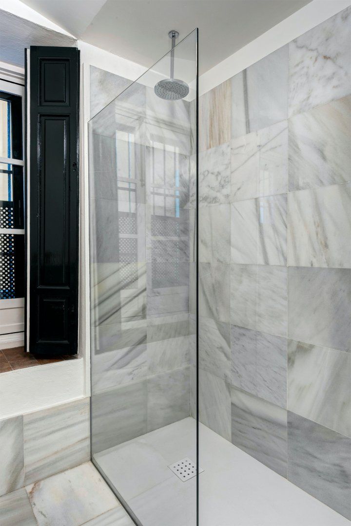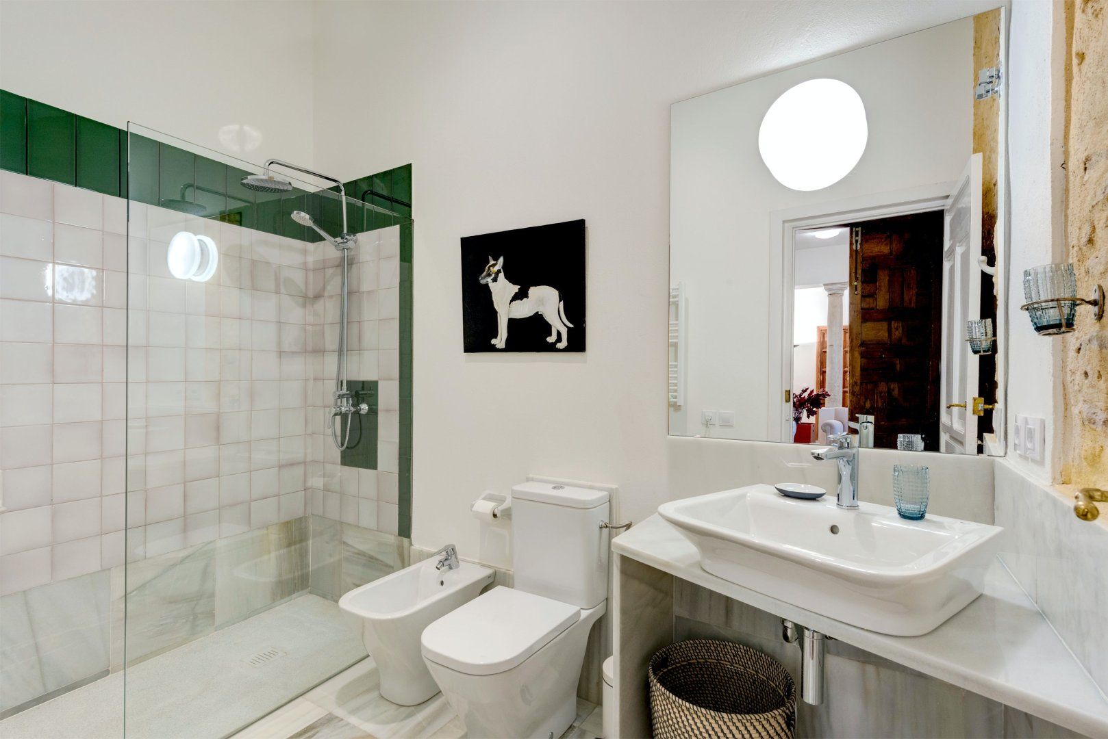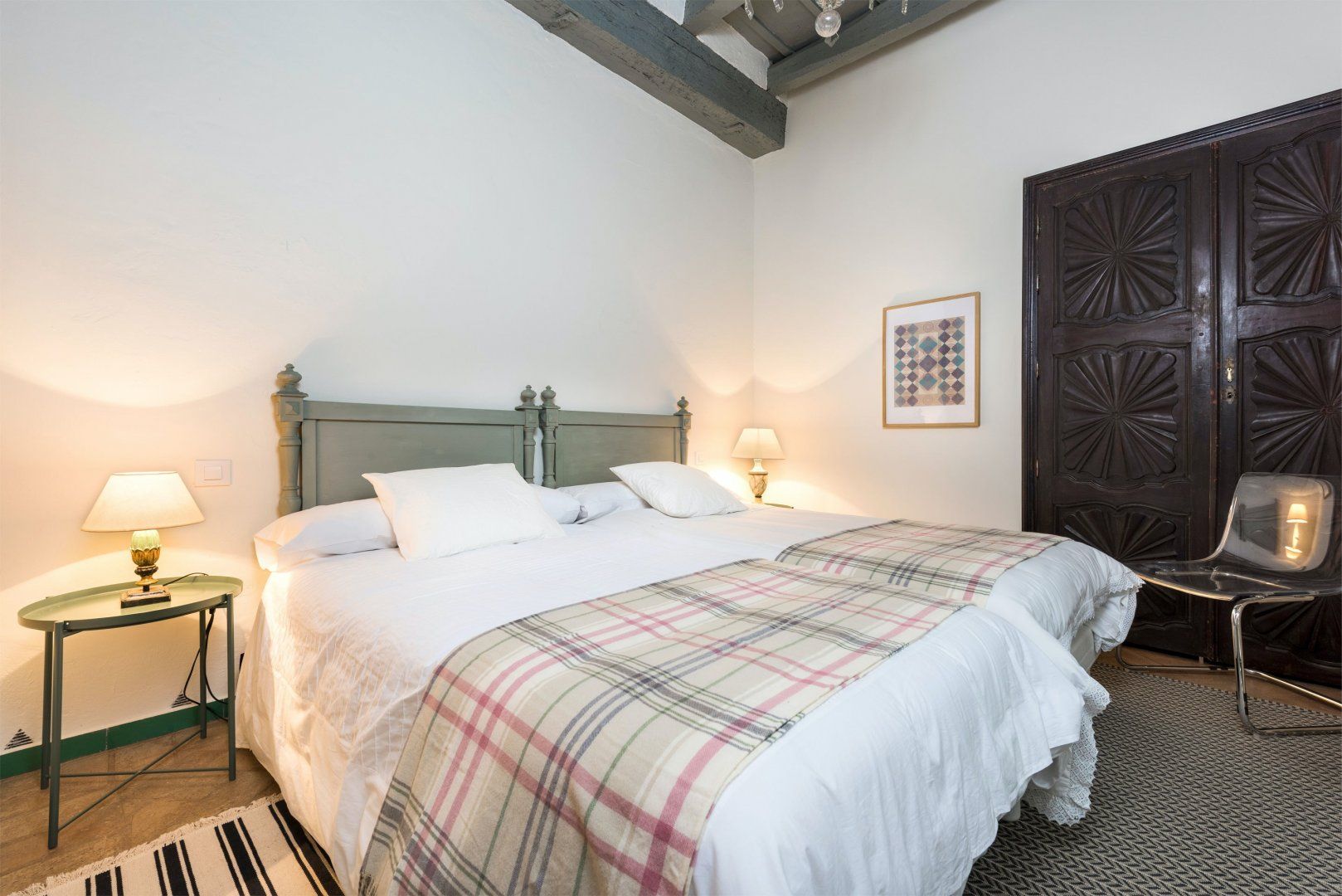 Inside, whitewashed walls, terracotta floors and classic-meets-contemporary decor offer an inviting welcome in the living area. Make yourself comfortable on the cushy sofa with a glass of Spanish wine and gaze out at the leafy communal courtyard from the large shuttered windows. The two bedrooms, meanwhile, are elegantly styled with wood headboards, exposed stone walls and carefully curated pieces of art. Finally, the bathrooms – exquisite spaces with their marble and tiled detailing – are ready to get any day on the right foot with their relaxing rainfall showers.