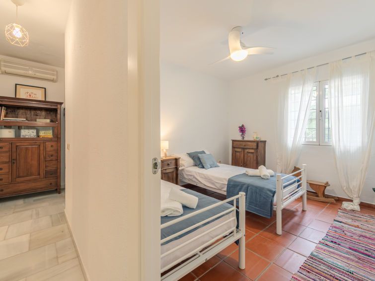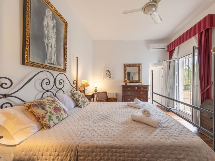"Las Codornices", 7-room villa 325 m2 on 3 levels. Practical and comfortable furnishings: large living/dining room with open-hearth fireplace, digital TV, flat screen, radio, CD-player and DVD. 2 rooms, each room with 1 french bed (150 cm, length 190 cm), bath/WC. 2 rooms, each room with 2 beds (90 cm, length 190 cm).